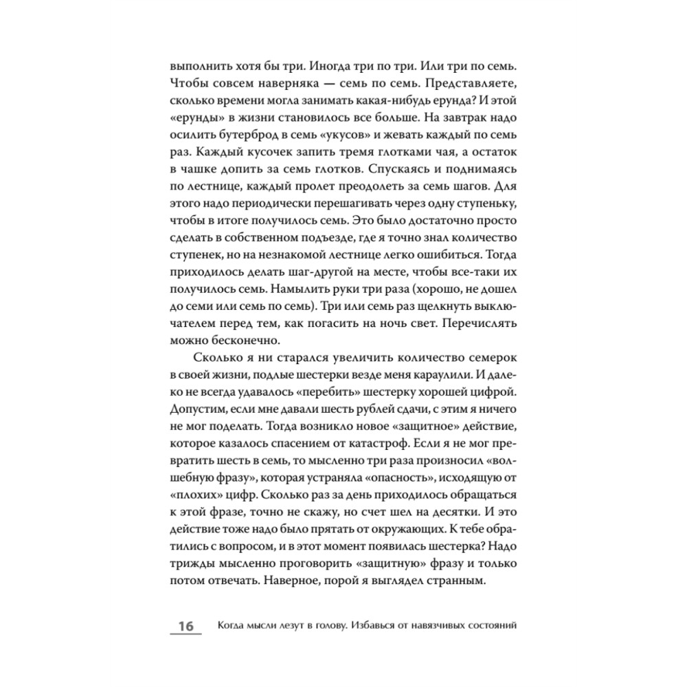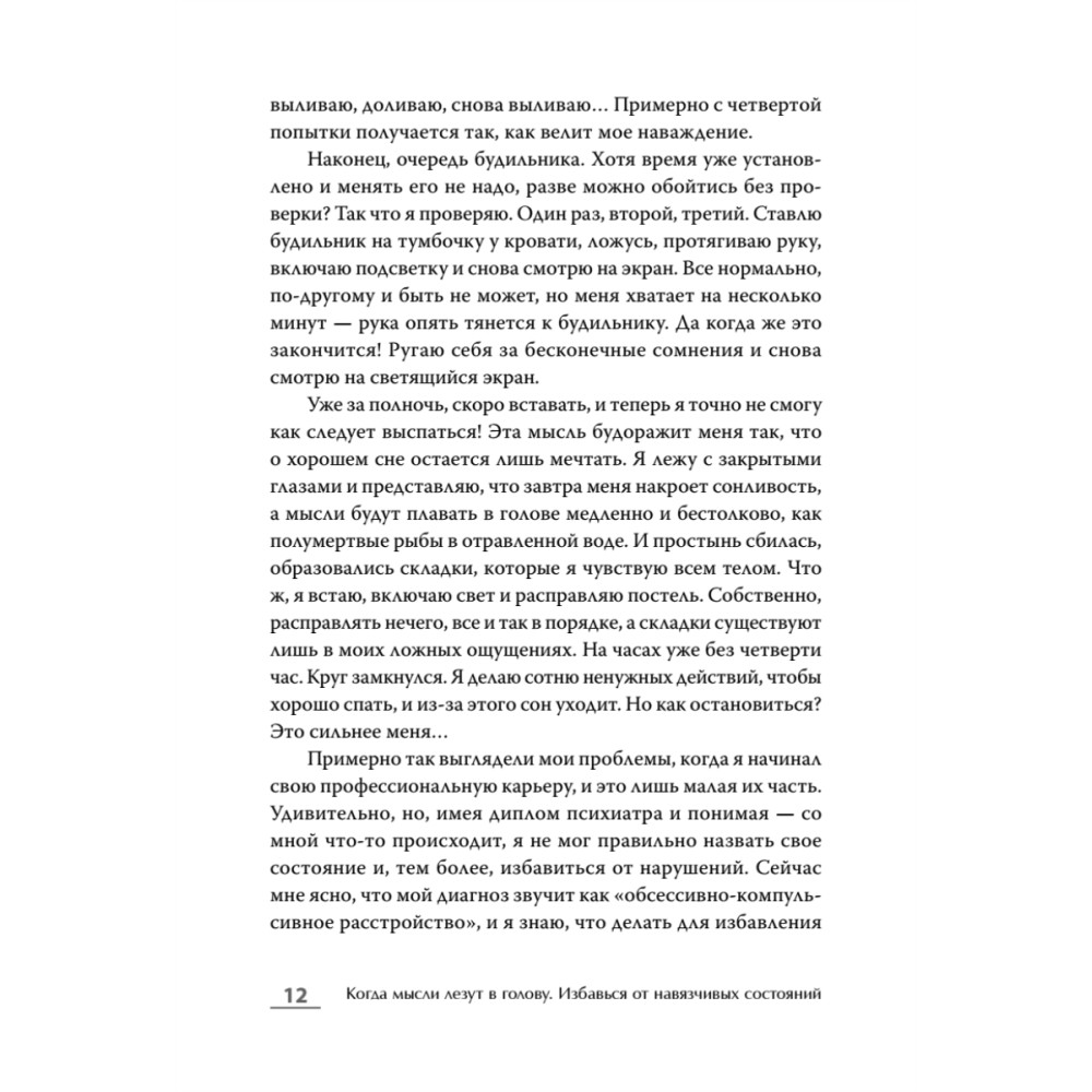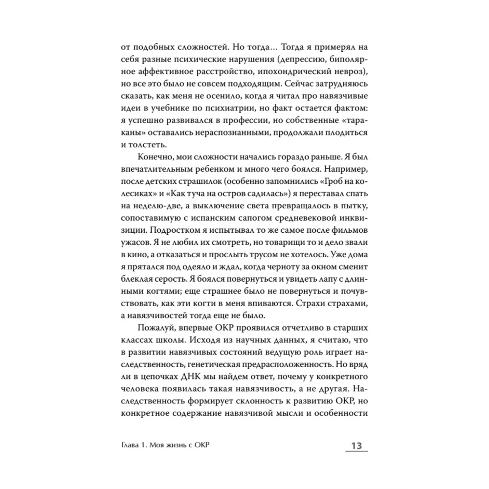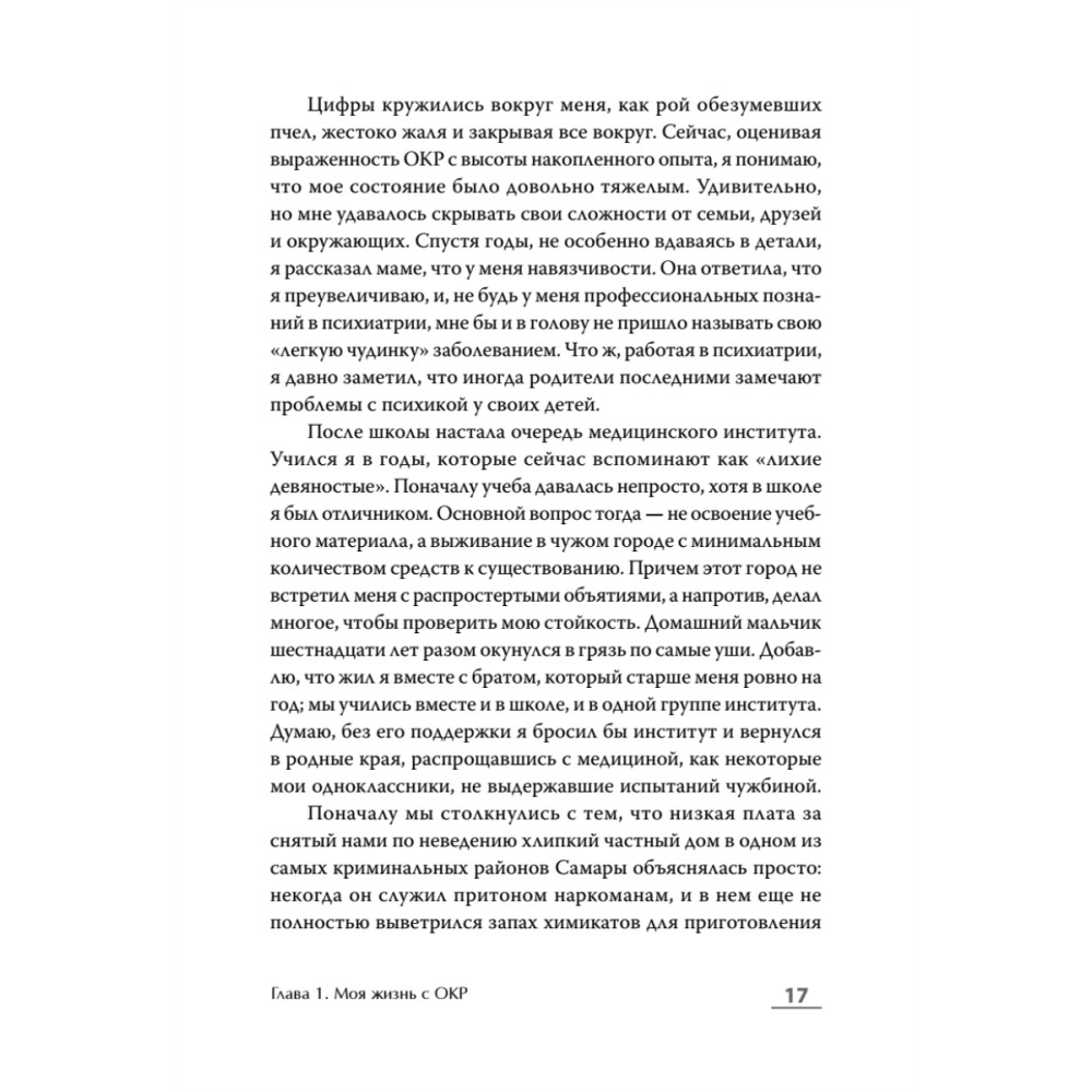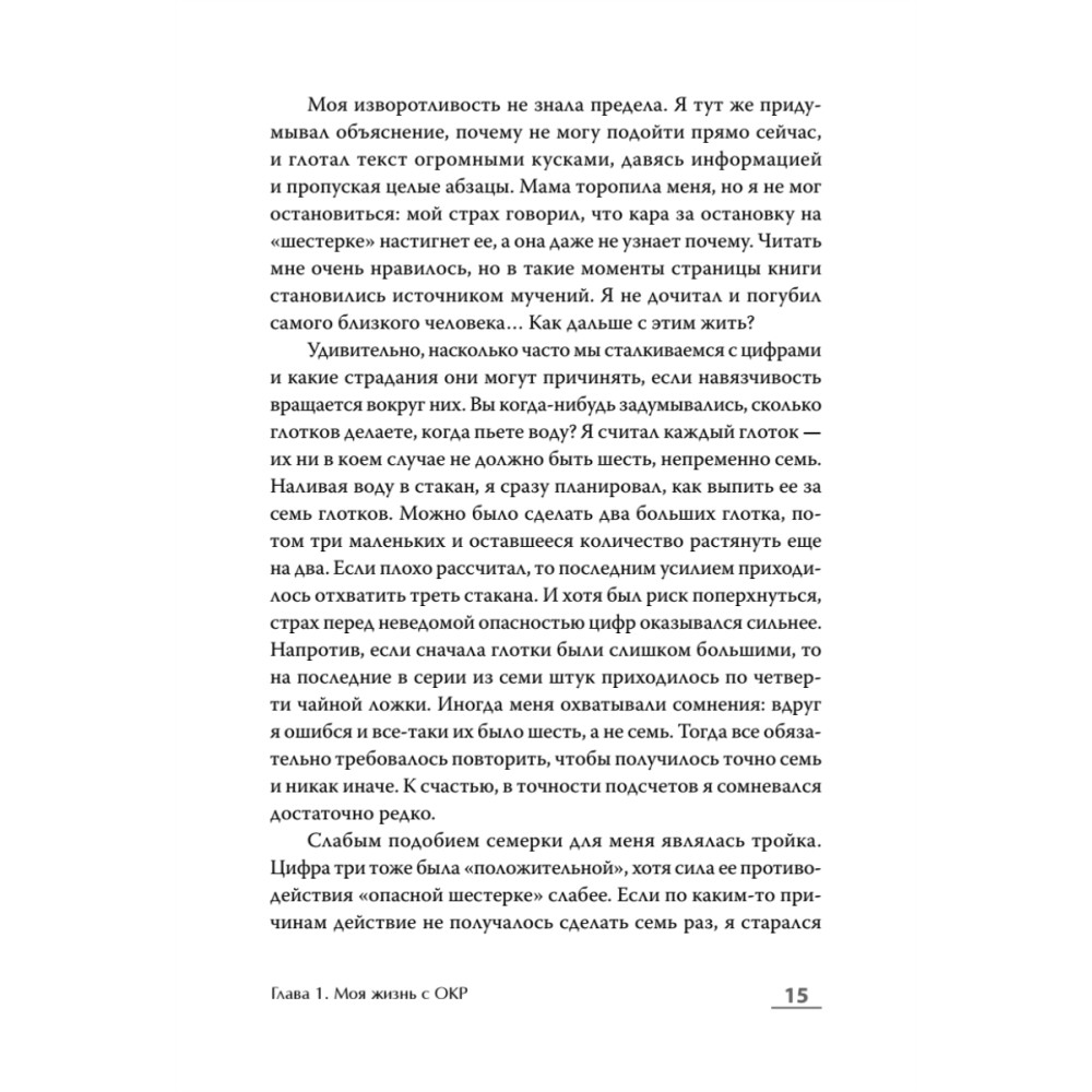 В книге подробно и доступно описана одна из самых эффективных методик — "экспозиция с предотвращением реакции": как постепенно и безопасно выйти из круга навязчивых действий и начать жить по-новому.