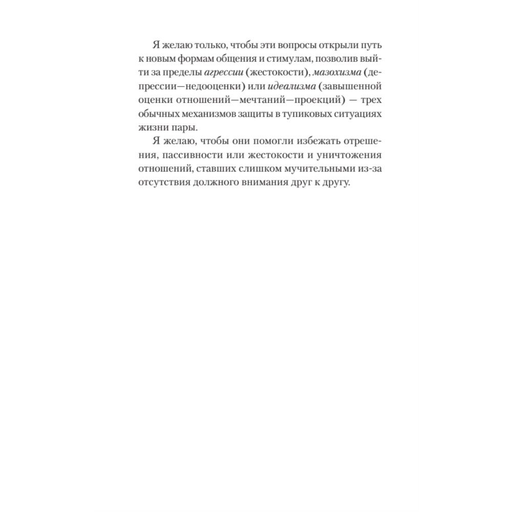 Почему в отношениях, построенных на любви и уважении, наступает момент, когда людям становится трудно говорить друг с другом? Можно ли улучшить такие отношения, научиться снова открыто и свободно выражать свои чувства и мысли и понимать друг друга? Знаменитый французский психолог Жак Саломе дает рекомендации парам, столкнувшимся с подобными проблемами, потому что отношения, в которых нет коммуникации, увы, обречены. Если вы хотите сохранить отношения с любимым человеком и сделать их более гармоничными и счастливыми, Жак Саломе поможет вам найти источник трудностей в вашей паре и преодолеть их.