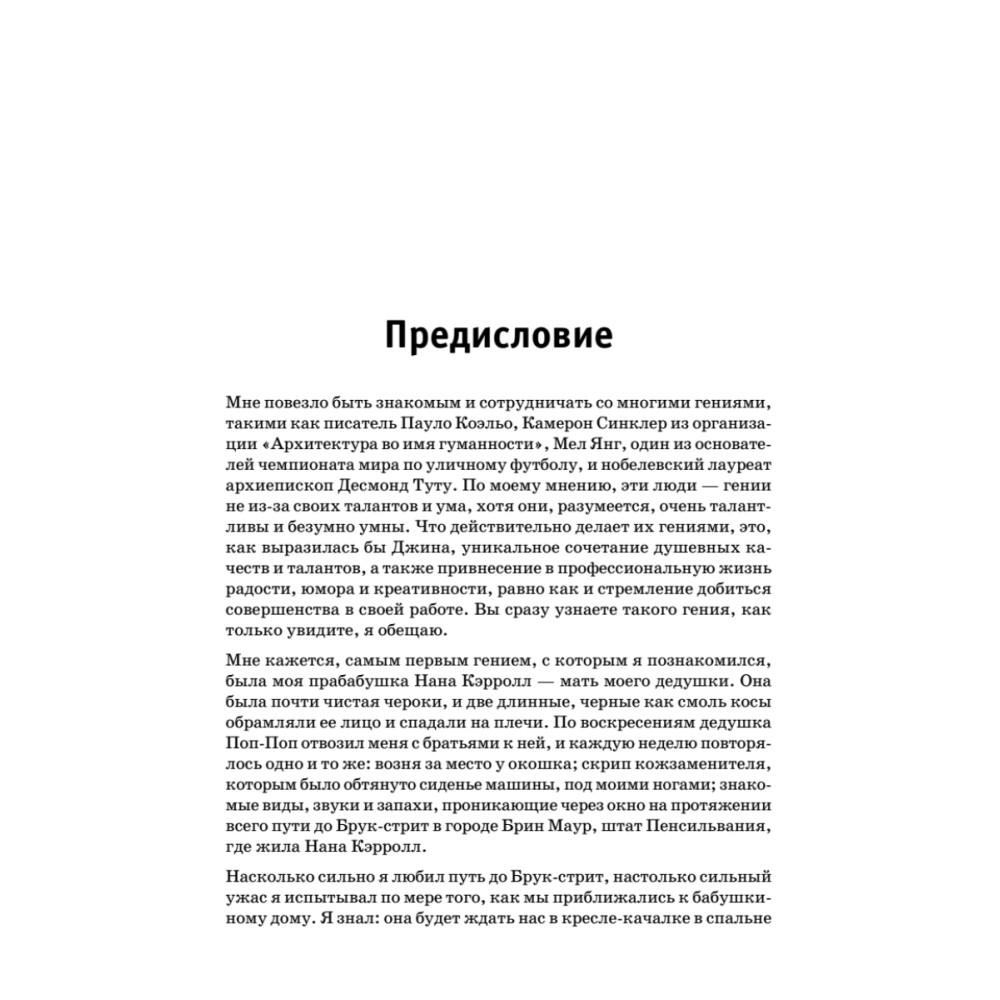 Многие полагают, что гениальность – это дар, «вспышка молнии, посланная богами», которая озаряет таких людей, как Эйнштейн или Моцарт, но никак не остальных. Считается, что гениальность так же, как и творчество, имеет магический, исключительный, непостижимый смысл. Но это совсем не так, утверждает Джина Рудан. На самом деле гениальность скрыта в каждом из нас. Каждый может добиться чего-то настолько необычного, что изменит его мировоззрение, бизнес и всю жизнь. Автор этой книги научит вас: определять свою гениальность; применять ее в жизни; окружать себя гениальностью; поддерживать гениальность дома и на работе в течение всей жизни; представлять свою гениальность другим. Каждая стадия включает в себя упражнения, научившись выполнять которые безупречно, вы сможете перейти на новый уровень. Итог – невероятное открытие: у вас есть все, чтобы добиться любой поставленной цели.