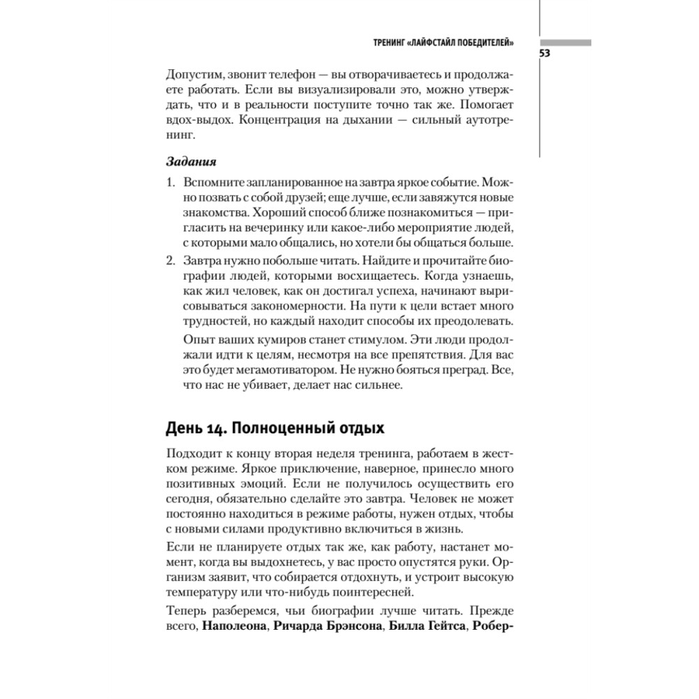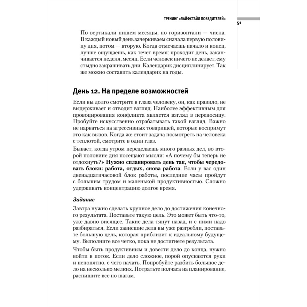 Книга написана одними из лучших и востребованных тренеров России по личностному росту и включает в себя их самые сильные практические тренинги. Весь материал представлен в виде пошаговых инструкций. Читатель, выполняя 1 час в день упражнения, приведенные в книге, через 2 месяца выйдет на совершенно новый уровень развития! Основной акцент сделан на проработке ключевых элементов жизни, которые коренным образом влияют на нее. Авторы дают подробные инструкции и практические задания по следующим темам: 10 шагов к достижению ошеломляющего успеха; проблемы как средство для достижения успеха; 3 главные проблемы на пути к вашему успеху; успешная модель жизни; учеба с результатом; тайм-менеджмент; самодисциплина; борьба с ленью: откуда черпать силу и энергию для ежедневного достижения своих целей; лайфстайл победителей; 50 привычек сильных людей; 10 секретов богатства, о которых не пишут в книгах; 3 проверенных способа увеличения своего дохода.