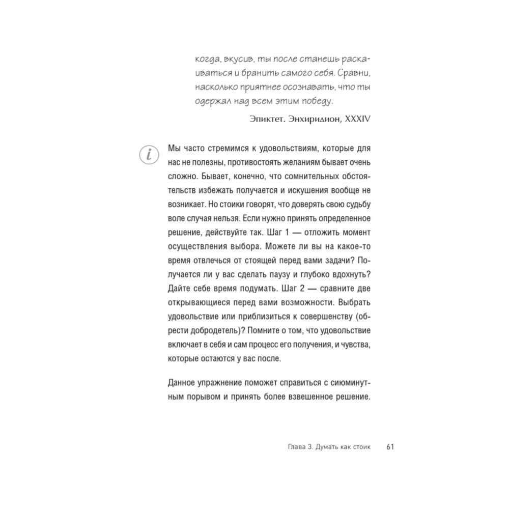 Вы в гневе? Вас одолевает страх? Не знаете, как пережить потерю? Эта книга — простое и понятное руководство для решения этических и психологических проблем. Вы научитесь контролировать свои мысли и действия. Перестанете тратить время и силы на то, что изменить невозможно, будете внимательнее и терпимее к людям. Эмоциональное состояние придет в норму, вы станете лучшей версией себя. Стоицизм поможет вам привести жизнь в порядок, научит контролировать мысли и эмоции, управлять своим поведением так, чтобы действовать на благо себе и людям вокруг. Стоицизм научит вас думать по-новому. Благодаря практическим заданиям, вы разовьете полезные навыки, которые обязательно пригодятся в дальнейшем.