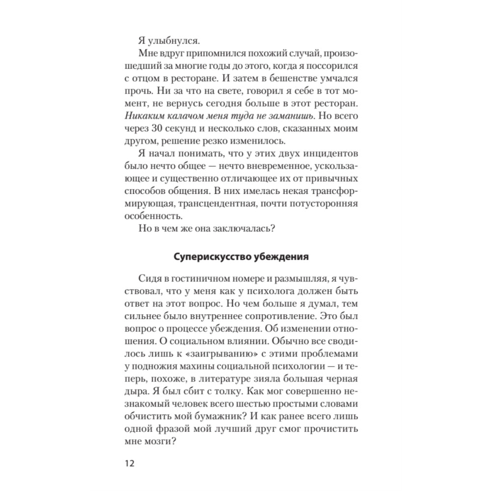 Известный английский психолог Кевин Даттон обнаружил мощный тип мгновенного, подсознательного убеждения — волшебный эликсир, который поможет вам разоружать скептиков, побеждать в спорах, заключать сделки и привлекать людей на свою сторону.