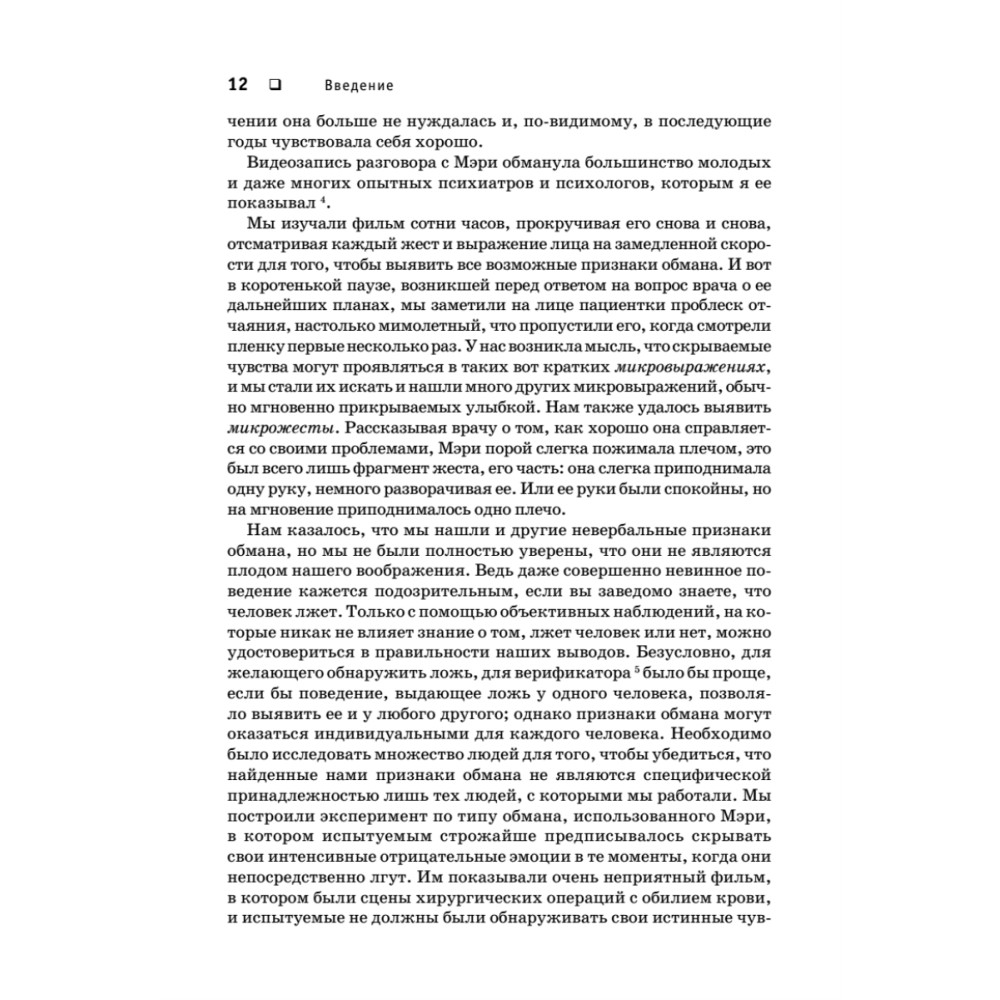 В книге Пола Экмана вы найдете исчерпывающие ответы на эти вопросы. Помните, что скрыть обман чрезвычайно сложно. Универсальные микровыражения и микрожесты всегда выдают лжеца, независимо от социального статуса и национальной принадлежности. Научитесь замечать то, чего не видят другие.