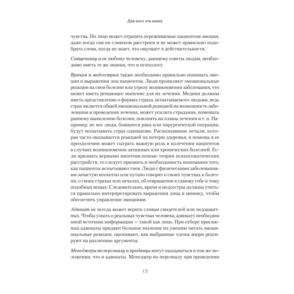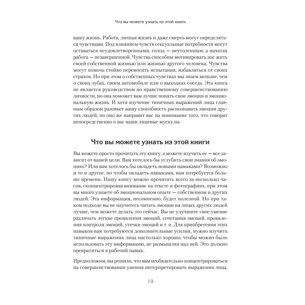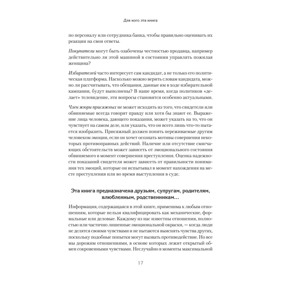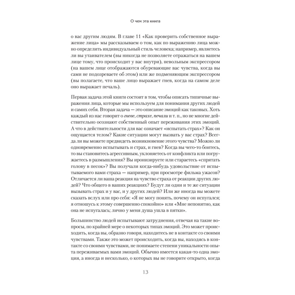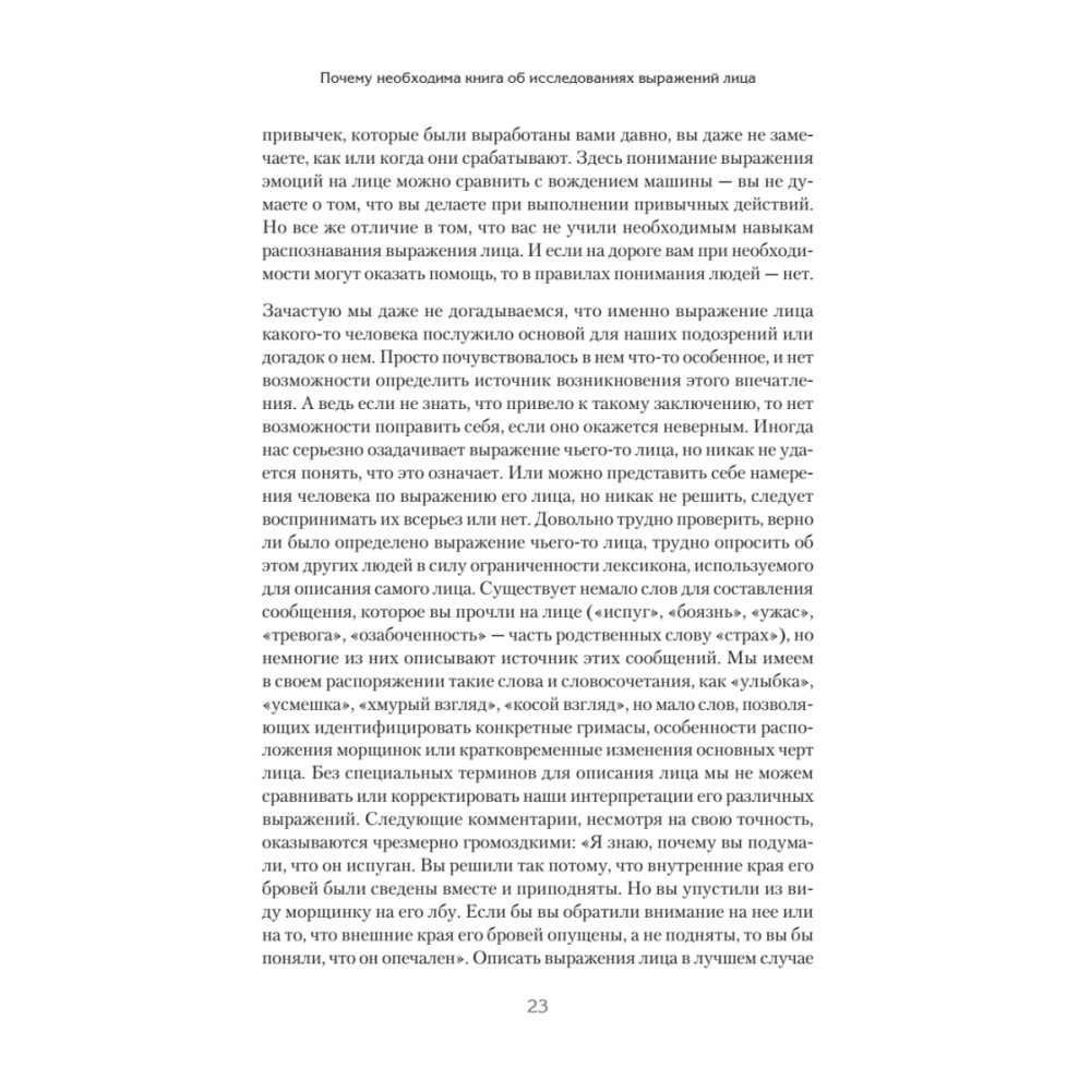 Перед вами новая книга Пола Экмана, которую вполне можно назвать вторым томом нашумевшего бестселлера «Психология лжи». Это книга-продолжение, книга-тренажер, книга-расшифровка. Вы заметите, если кто-то притворяется удивленным? А если кто-то испуган, но хочет выглядеть рассерженным, вам под силу это разглядеть? Насыщенная огромным количеством тщательно отобранных фотографий и специальных упражнений, эта книга позволит вам безошибочно распознавать ложь, моментально читая по лицам эмоции: как подлинные, так и «наигранные». Радость, удивление, страх, гнев, печаль, отвращение — ничто не ускользнет от вашего внимательного взгляда. Совершенствуйте свои навыки, чтобы защититься от обмана на работе и дома. Мастерство Пола Экмана сослужит вам хорошую службу!