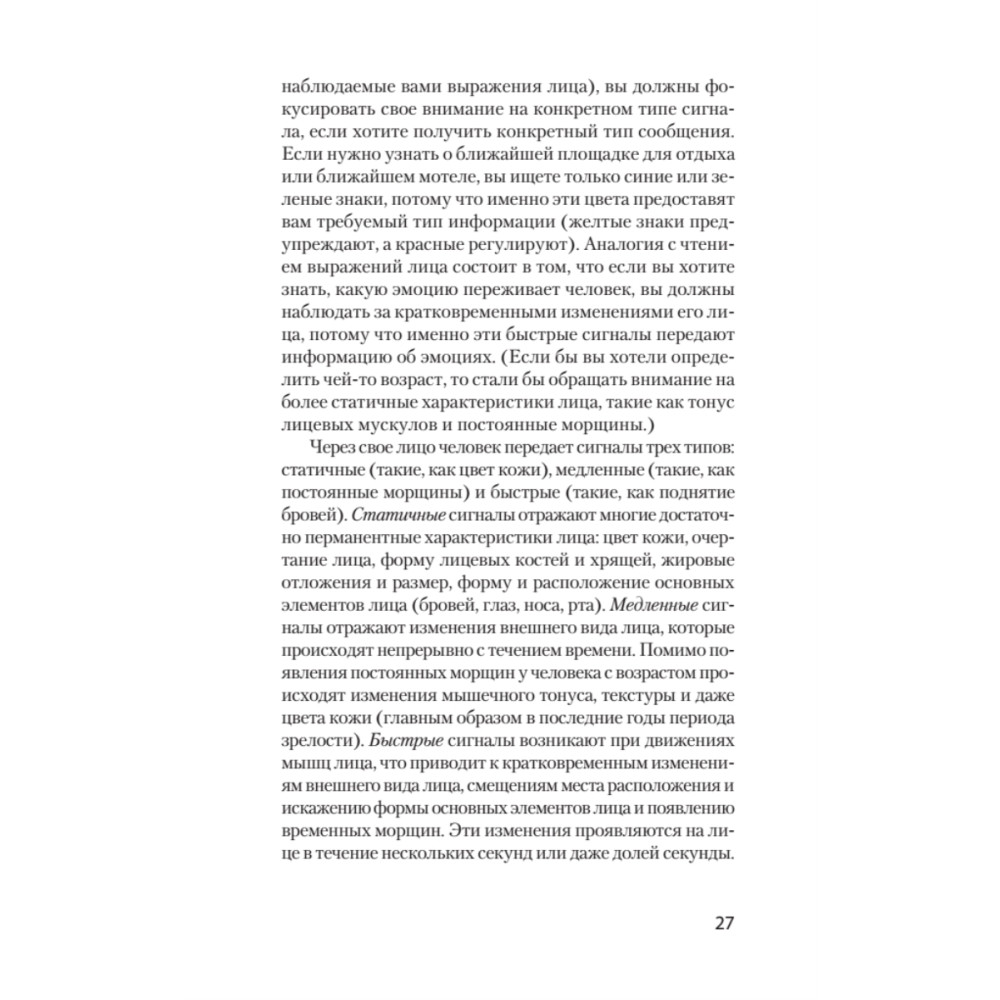 Насыщенная огромным количеством тщательно отобранных фотографий и специальных упражнений, эта книга позволит вам безошибочно распознавать ложь, моментально читая по лицам эмоции: как подлинные, так и «наигранные».