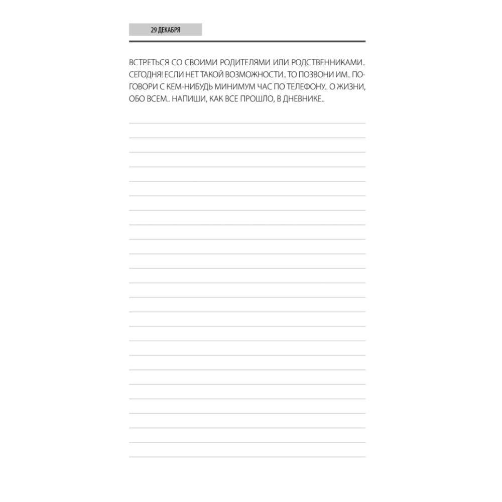 Этот дневник.. это список заданий на весь год.. Я выбрал по семь дат в каждом месяце и дал свои рекомендации по каждому дню.. которые обязательно нужно выполнять.. и потом в этом же дневнике писать отчет, как что прошло..