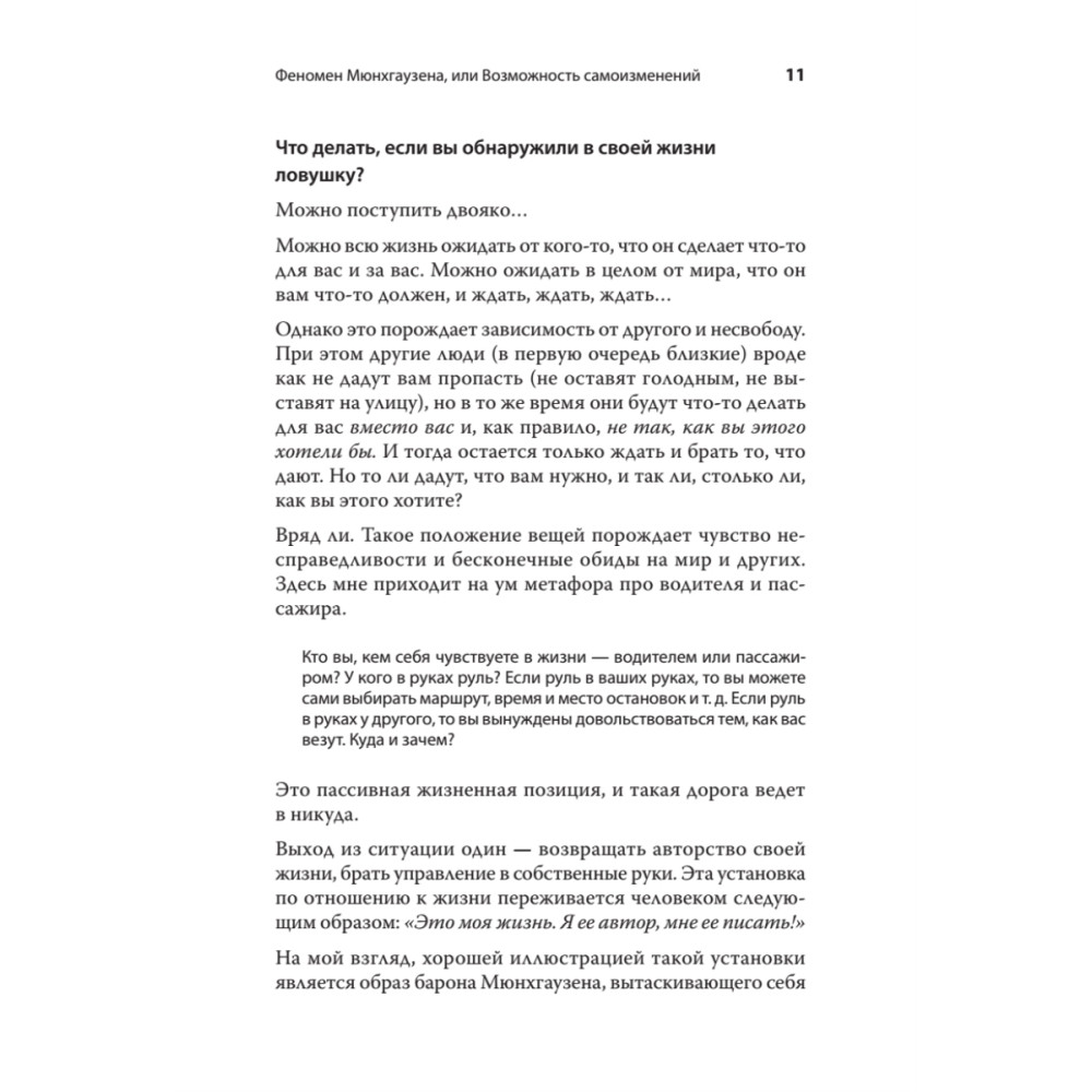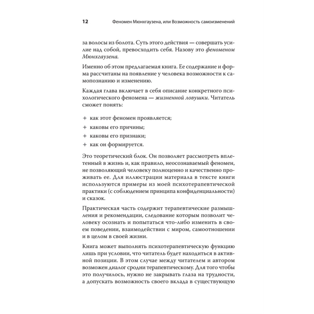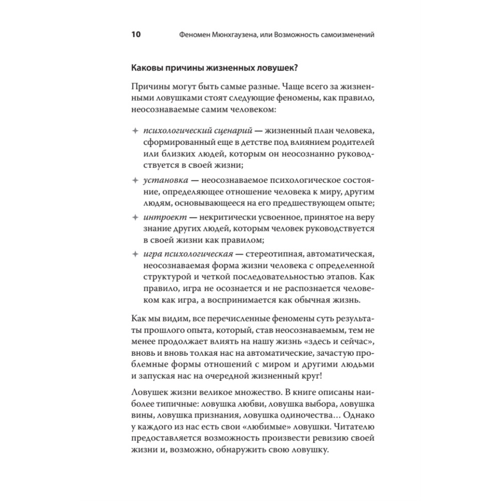 У вас в жизни были ситуации, когда вы: Чувствовали, что ходите по кругу, но выхода нет. Злились, обижались, были возмущены поведением своих близких, и при этом ничего не могли изменить. Испытывали скуку и апатию длительное время. Чувствовали себя беспомощным. Вы ощущали, что с вами что-то происходит помимо вашей воли. Ваша жизнь попадала в ловушку, выхода из которой не было видно. Из этой книги вы узнаете, как справляться с жизненными ловушками, как выйти из тупика, если вы в него попали, как начать жить свободной и активной жизнью.