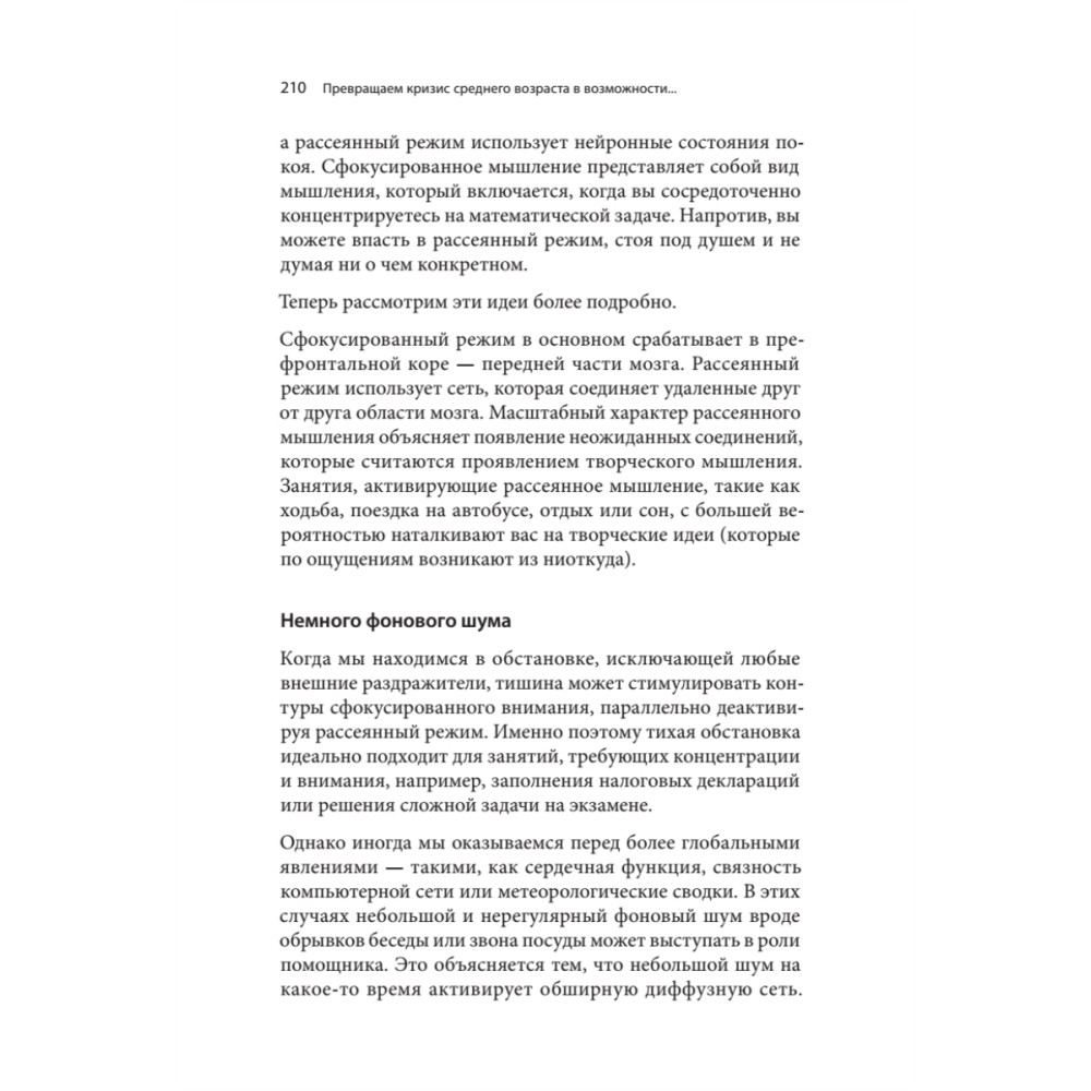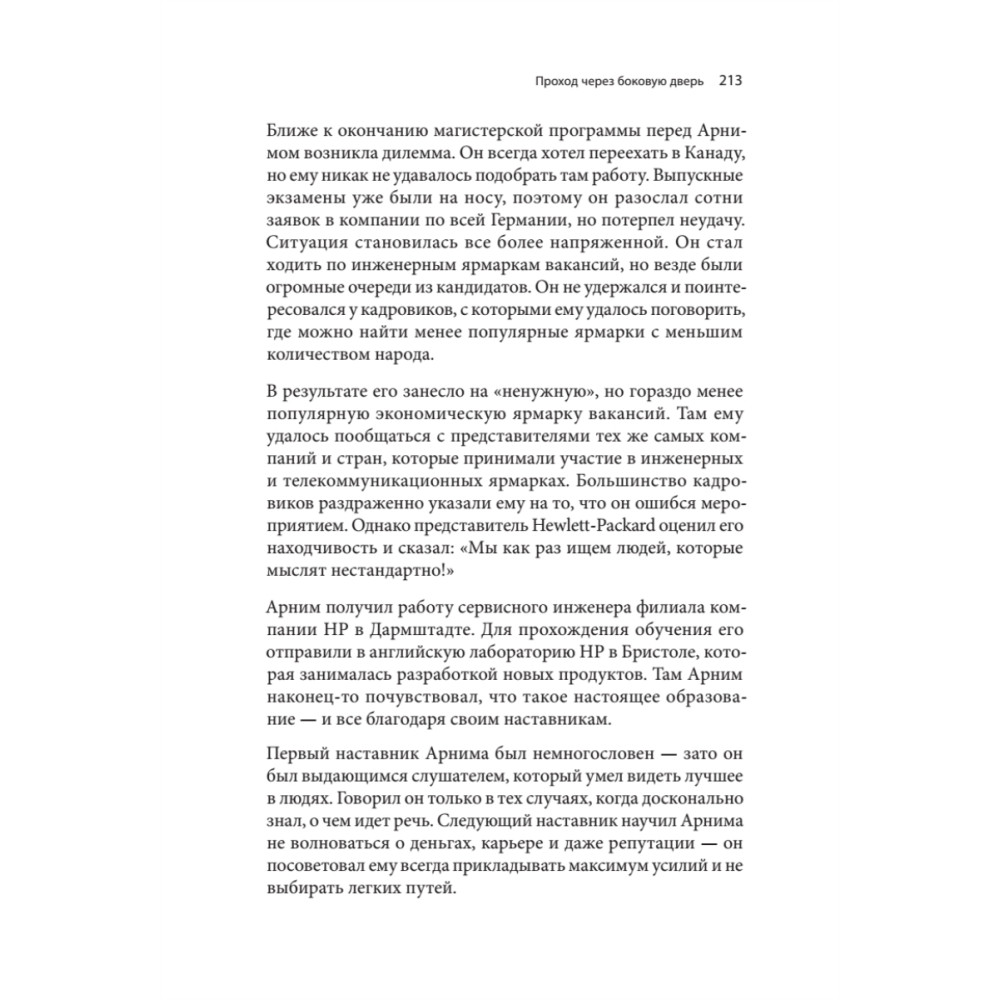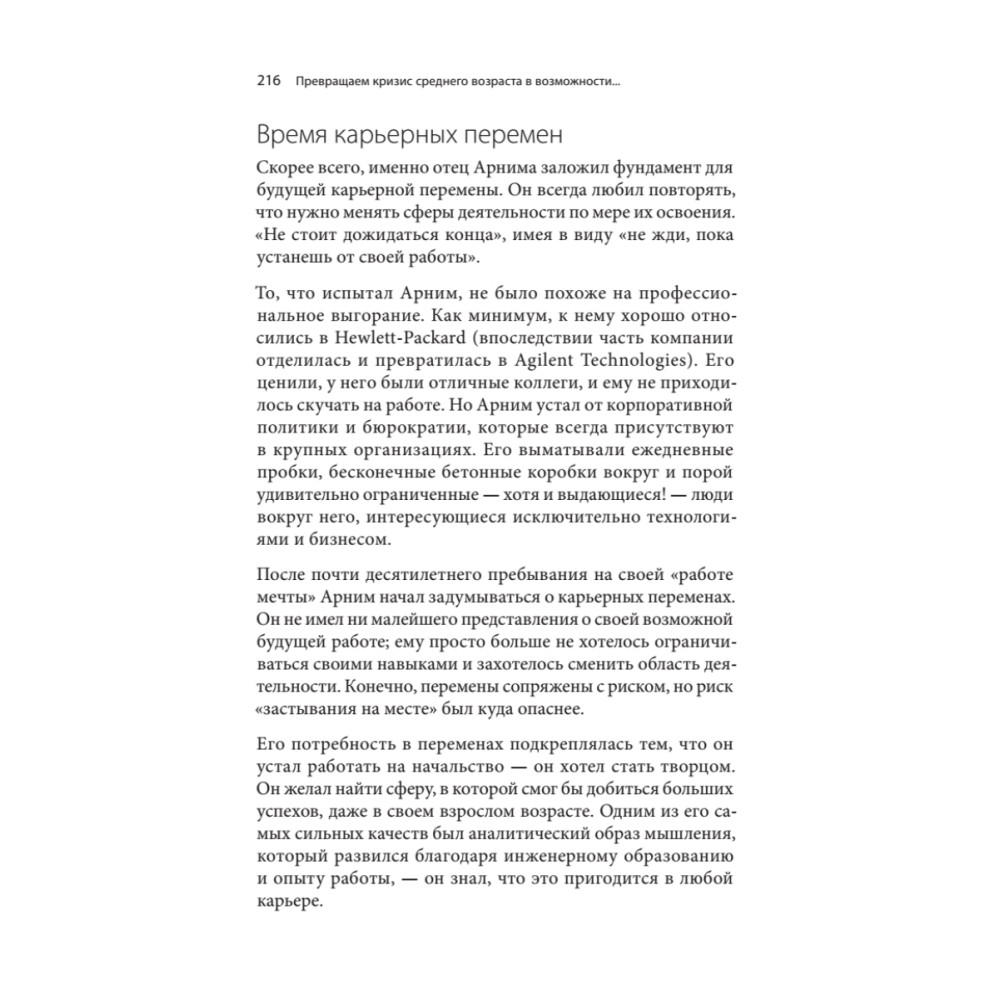 «Mindshift» — это кардинальные перемены. Ваша жизнь рушится? Как гром среди ясного неба — внезапное увольнение. Вы опытный сотрудник, но система выкинула вас на помойку... Ваш шеф — идиот, превративший работу в ад... Вы получили блестящее образование, но оно было нужно не вам, а вашим родителям... Зарплата паршивая, а работа и того хуже... Что делать? Ответ вы найдете в книге Барбары Оакли, автора бестселлеров «Думай как математик» и «Уроки на отлично!». Только радикальные изменения в вашем отношении к жизни и работе помогут вам преуспеть и построить новую карьеру, расширив сферу увлечений. Благодаря этой книге, вы: научитесь обращать свои недостатки (например, плохую память) в достоинства; найдете любимое дело и сделаете новую карьеру; поймете, что вы способны учиться, меняться и расти эффективнее, чем думаете; научитесь распределять свое время между работой и личной жизнью. Барбара Оакли – (1955, Лодай, Калифорния, США) профессор машиностроения в Oakland University, доктор наук, инженер-консультант, член совета Американского института медицинского и биологического машиностроения. После школы Оакли записалась в армию, которая отправила ее учиться в Университет Вашингтона, где стала специалистом по славянским языкам и литературе. Затем получила вторую специальность, связанную с электротехническими науками. Работала англо-русским переводчиком на советских траулерах в Баренцевом море. Полгода проработала радистом на антарктической станции США на Южном полюсе. Позже судьба привела её в компанию Ford, где ей потребовались инженерные знания. Не спасовав перед трудностями, она получила научную степень в Оклендском университете и стала там преподавать. На своём непростом профессиональном пути Барбара освоила наиболее эффективные способы обучения, о которых и поведала всему миру на Coursera. «Книга обязательна к прочтению всеми, кто пытается начать с чистого листа, обнулиться или найти себя. Барбара Оакли рассказывает, как отрицательные черты могут стать преимуществом, и доказывает, что лучше расширять сферу увлечений, чем гнаться за мечтой. Прибавьте сюда вдохновляющие истории и практические советы, и вы поймете, что Mindshift — это книга, которая может изменить вашу жизнь». Дэниел Пинк, «Нью-Йорк Таймс» автор бестселлеров «Драйв» и «Новый мозг»
