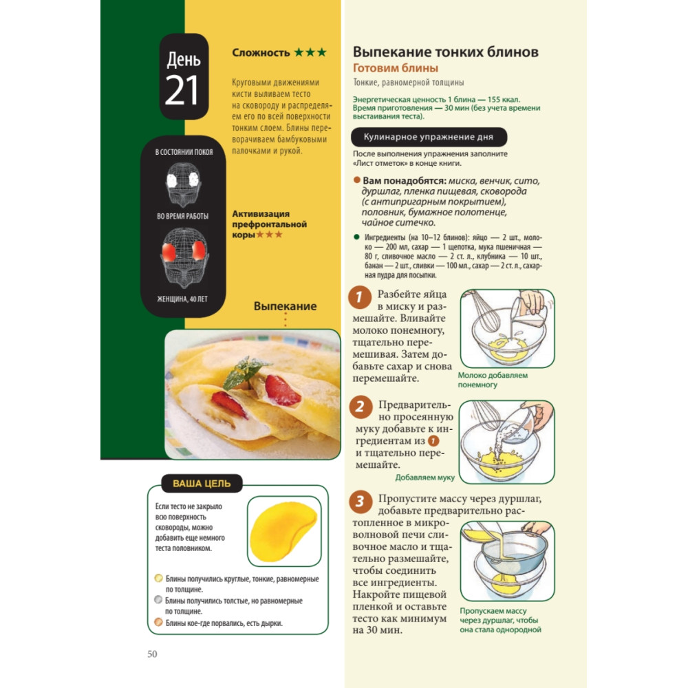 Хотите, чтобы развитие вашего мозга продолжалось без остановок? Хотите, чтобы это происходило легко и естественно в процессе ежедневных занатий? Доктор Кавашима, всемирно признанный эксперт по развитию мозга, предлагает вам новый подход к тренировке мозга, который поможет вам деражть свой мозг в тонусе. Эта книга предназначена для тренировки мозга в процессе ежедневного приготовления пищи. Чтобы оставаться здоровым и сохранить активность мозга на долгие годы, человеку необходимы: 1) регулярная физическая нагрузка; 2) сбалансированное питание; 3) полноценный сон. За тем, чтобы организм получил достаточное количество часов сна, вы можете проследить самостоятельно. Задача данной книги — помочь вам выработать привычку заставлять мозг работать во время приготовления пищи, а также контролировать сбалансированное питание.