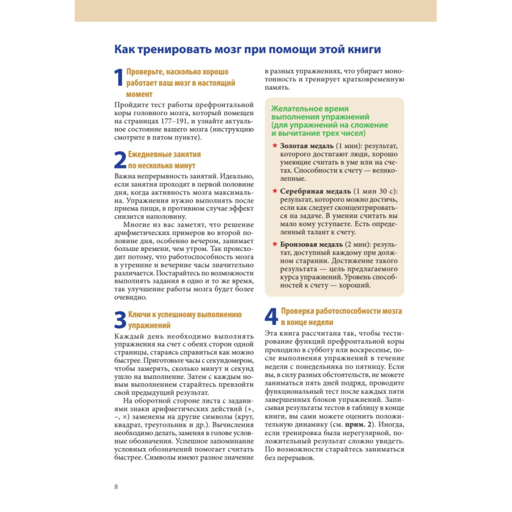 Новая, продвинутая версия легендарного бестселлера! Перед вами книга с лучшей в мире методикой тренировки мозга. Упражнения, которые вы будете выполнять всего по 5 минут каждый день, помогут активно развивать психические процессы: память, мышление, внимание. Это кажется невозможным? Попробуйте! Уже более 2 00 000 миллионов людей в мире достигли невероятных результатов, пользуясь этой методикой. Теперь она поможет и вам!