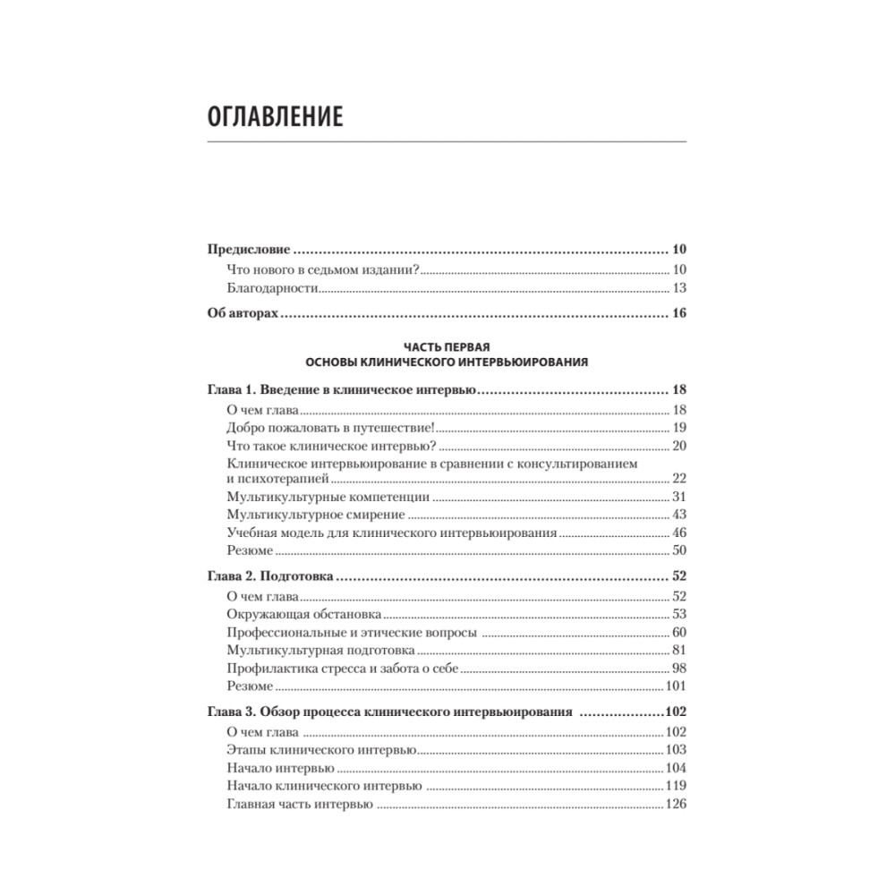 Клинические интервью — это фундамент, на котором стоит психологическое консультирование и психотерапия. В новом, седьмом издании одного из лучших пособий по этой тематике вы найдете обширный материал о том, как проводить оценку, учитывающую культурные особенности, как формулировать диагноз, планировать лечение и какие вмешательства необходимы при проведении клинического интервью. Авторы проводят всесторонний анализ клинического интервью, а также дают рекомендации по развитию навыков.