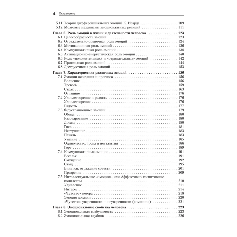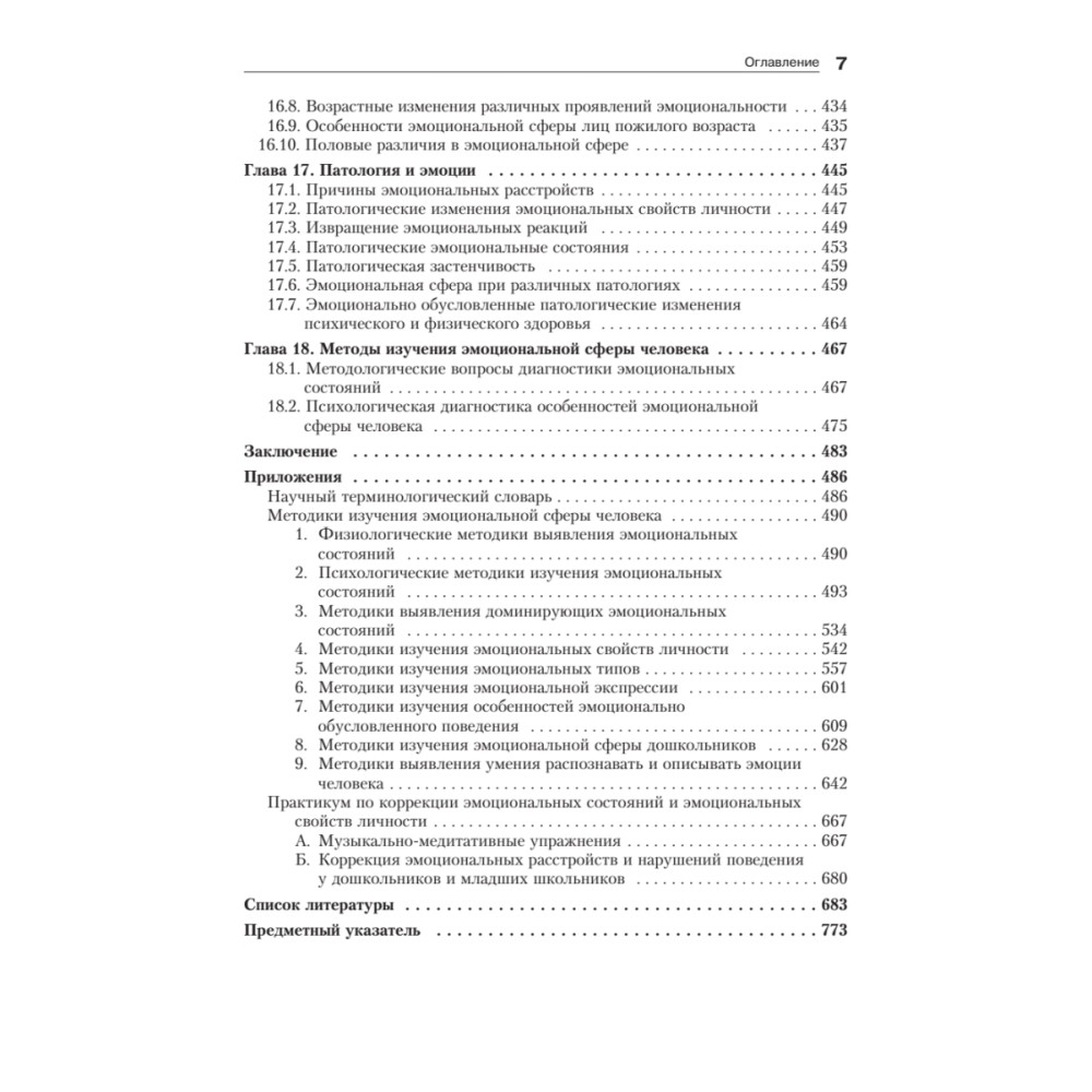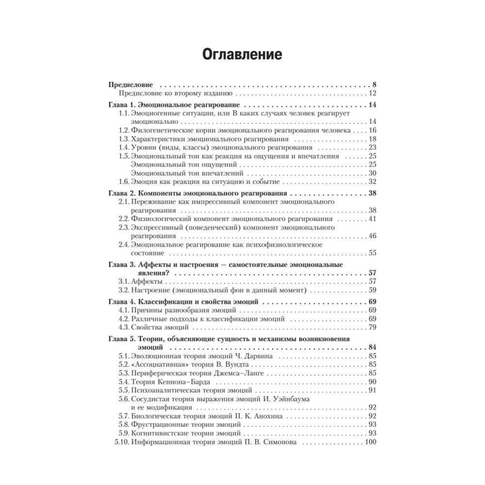 Второе издание учебного пособия (предыдущее вышло в 2001 г.) переработано и дополнено. В книге изложены теоретические и методологические вопросы изучения эмоций и чувств человека. Основное внимание уделено анализу структуры эмоциональной сферы и ее составляющих: эмоционального тона, эмоций, эмоциональных свойств личности, чувств, эмоциональных типов. Рассмотрены теории возникновения эмоций, их функции и роль в жизни человека, изменения эмоциональной сферы в онтогенезе и при патологии. В пособии приведены многочисленные методики изучения различных компонентов эмоциональной сферы человека, которые могут с успехом использоваться как в научных, так и практических целях. Научное содержание почти всех глав второго издания расширено с учетом отечественных и зарубежных исследований, опубликованных за последние 15 лет. Учебное пособие предназначено для психологов, психофизиологов, педагогов, а также для студентов и аспирантов психологических и педагогических факультетов и вузов.