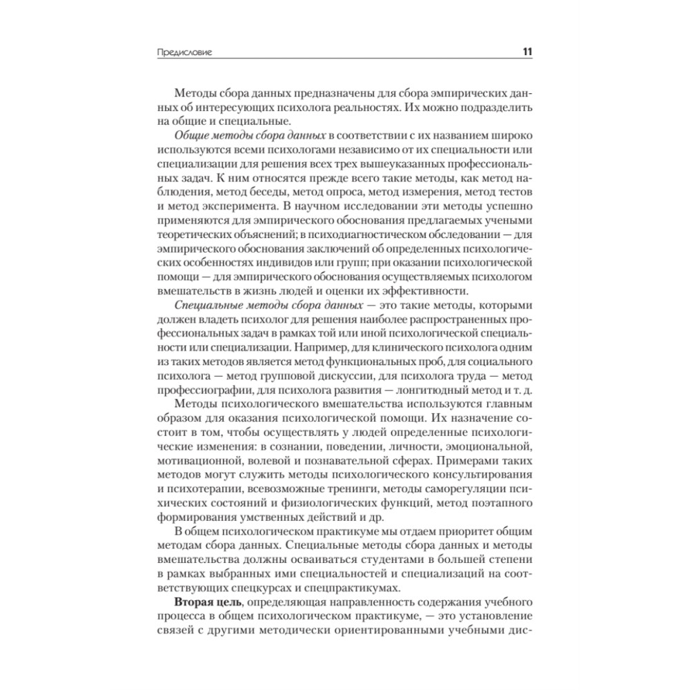 Предлагаемый учебник написан коллективом сотрудников факультета психологии МГУ имени М.В.Ломоносова как руководство для освоения студентами общих методов сбора данных, используемых в психологии: метода наблюдения, метода опроса, метода беседы, метода измерения, метода тестов и метода эксперимента. Эти методы, в соответствии с их названием, широко используются всеми психологами, независимо от их специальности или специализации, для решения основных профессиональных задач: проведения исследования, психодиагностического обследования, оказания психологической помощи людям. В научном исследовании эти методы используются для эмпирического обоснования предлагаемых учеными теоретических объяснений, в психодиагностическом обследовании - для эмпирического обоснования заключений об определенных психологических особенностях индивидов или групп, при оказании психологической помощи - для эмпирического обоснования осуществляемых психологом вмешательств в жизнь людей и оценки эффективности этих вмешательств. Для студентов высших учебных заведений, обучающихся по всем специальностям и специализациям психологии, по дисциплине «Общий психологический практикум». Рекомендовано к изданию Ученым советом факультета психологии МГУ им. М.В.Ломоносова