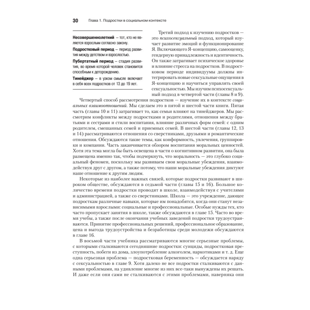 Учебное пособие объективно отражает современный мировой уровень развития психологии пубертатного возраста — одного из сложнейших и социально значимых разделов возрастной психологии. Превращение ребенка во взрослого — сложный и драматический процесс, на ход которого влияет огромное количество разнообразных факторов: от генетики и физиологии до политики и экологии. Эта книга, выдержавшая за рубежом 12 изданий, дает в распоряжение отечественного читателя огромный теоретический, экспериментальный и методологический материал, наработанный западной психологией, медициной, социологией и антропологией, в талантливом и стройном изложении Ф. Райса и К. Долджин, лучших представителей американской гуманитарной науки. Рекомендуется студентам гуманитарных специальностей, психологам, педагогам, социологам, юристам и социальным работникам.