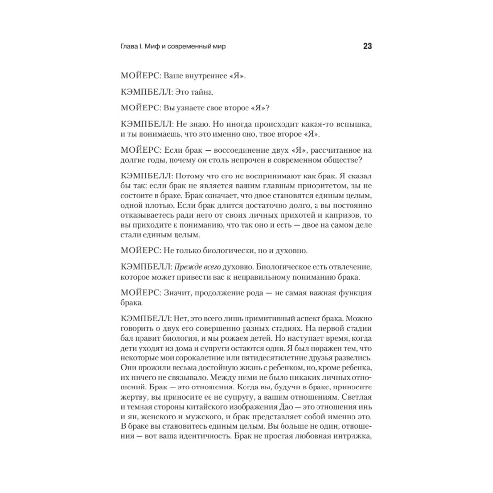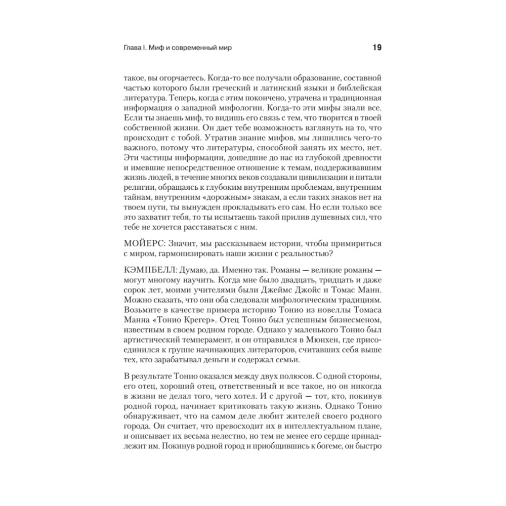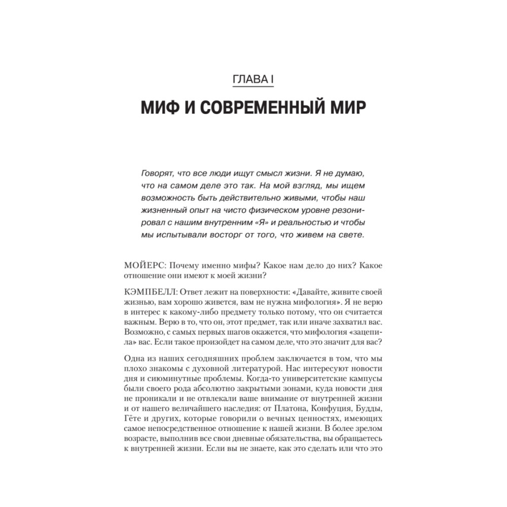 Вы держите в руках одну из лучших книг Джозефа Кэмпбелла. В ней автор раскрывает тайны влияния мифов на современную жизнь, например, как отношения между супругами в современном браке зависят от мифа о непорочном зачатии Иисуса Христа, и как это воплощено в творчестве Джона Леннона. Вы узнаете, как символы древних повествований продолжают оказывать влияние на наше современное понимание таинств рождения, смерти, любви и войны. Кэмпбелл проводит параллели между историями богов и богинь Древней Греции и Рима, традициями буддизма, индуизма и христианства, исследует широкий спектр тем, которые, вместе взятые, определяют универсальность человеческого опыта во времени и культуре. Эта книга , соединив в себе энергию мифов, сама стала явлением культуры, оказывающим глубокое влияние на нашу жизнь. Джозеф Кэмпбелл - выдающийся ученый, писатель и педагог, оказал огромное влияние на миллионы людей, в том числе создателя "Звездных Войн" Джорджа Лукаса.