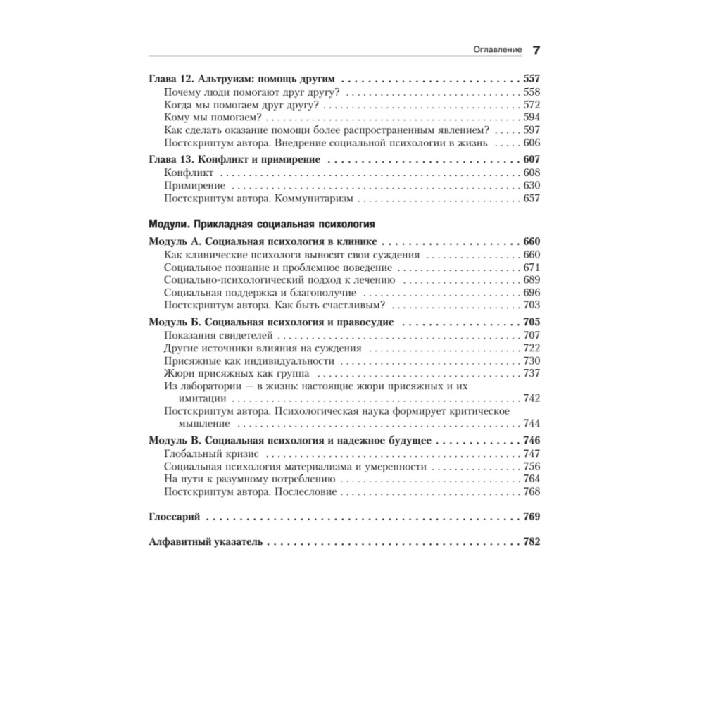 В седьмом издании «Социальной психологии» обобщаются результаты самых последних исследований различных социальных явлений. Представлены теории и данные, которые, с одной стороны, вполне доступны рядовому студенту, а с другой — не освещаются в иных курсах по социологии или психологии. В этом издании, так же как и в предыдущем, большое внимание уделено различным культурам, фундаментальным принципам социального мышления, социального влияния и социального поведения. Автор иллюстрирует эти принципы транснациональными примерами. Живой язык автора, обзор социально-психологических и общепсихологических теорий, описание разнообразных экспериментов, несомненно, привлекут внимание не только студентов-психологов и их преподавателей, но и социологов, философов, политологов.
