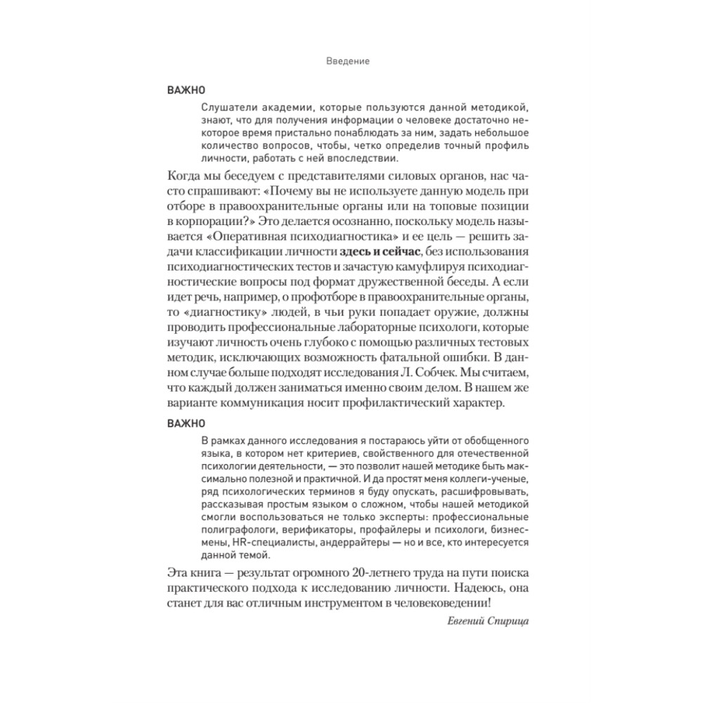 Евгений Спирица – руководитель Международной Академии исследования лжи, гуру верификации. Основатель национальной школы безынструментальной детекции лжи, вобравшей в себя опыт бизнеса, лучшие традиции легендарной 30-й лаборатории КГБИ СССР, ФСБ и МВД РФ. Офицер, имеющий две боевые награды за участие в специальных мероприятиях; успешный предприниматель.
