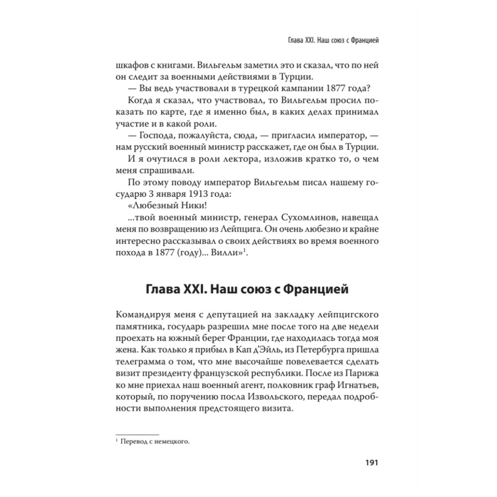 Царский военный министр, которого судил царь, посадил Керенский, а освободил Ленин. Под руководством Владимира Александровича Сухомлинова Россия вошла в Первую мировую войну, чтобы исчезнуть в ее пламени и хаосе революции. А сам он закончил свою карьеру презираемым арестантом, подвергнутым в обществе остракизму. “Никогда Россия не была так хорошо подготовлена к войне, как в 1914 году» - написал в своей книге В. А. Сухомлинов. Освобожденный большевиками, он очень вовремя уехал за рубеж, чтобы оставить нам свои мемуары, которые в России практически не издавались. Мемуары Сухомлинова — это воспоминания офицера и военного министра о русской армии. Это воспоминания царского слуги о государе и власти. Это мемуары “узника совести” о тюрьме, от которой его не уберегли ни чины, ни заслуги. Военных сажали и осуждали задолго до 1937 года. Когда Сухомлинова арестовали, Сталин еще сидел в своей сибирской ссылке. Уверен, что мемуары Сухомлинова добавят много новой информации для вашего понимания истории нашей Родины. Составьте свое собственное мнение…