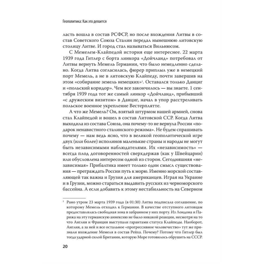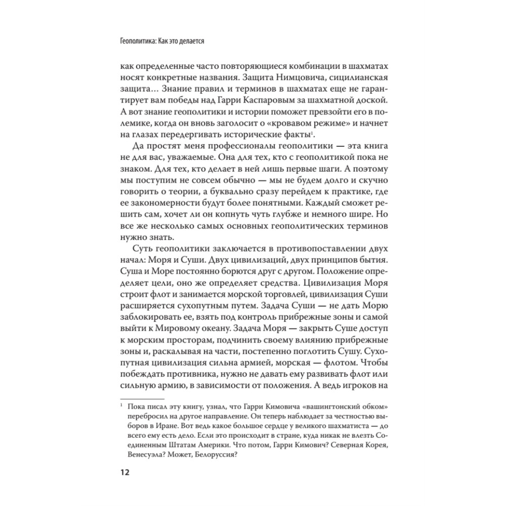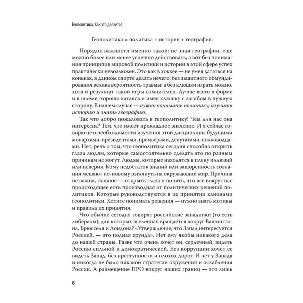 Используя множество исторических примеров, известных и малоизвестных широкой публике, автор показывает, как принципы геополитики реализуются на практике. И ход истории сразу становится понятным, а поступки государственных деятелей, которые до этого считались «необъяснимыми», наполняются логикой и смыслом.