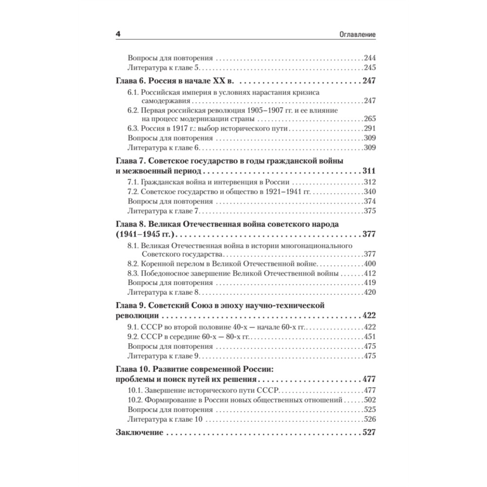 Структура и содержание учебника соответствуют Федеральному государственному образовательному стандарту. Каждая из десяти глав отражает соответствующие исторические этапы развития России и включает в себя параграфы, в которых рассматриваются наиболее важные и сложные исторические проблемы. В каждом параграфе выделены смысловые блоки, соответствующие основным дидактическим единицам учебной программы.