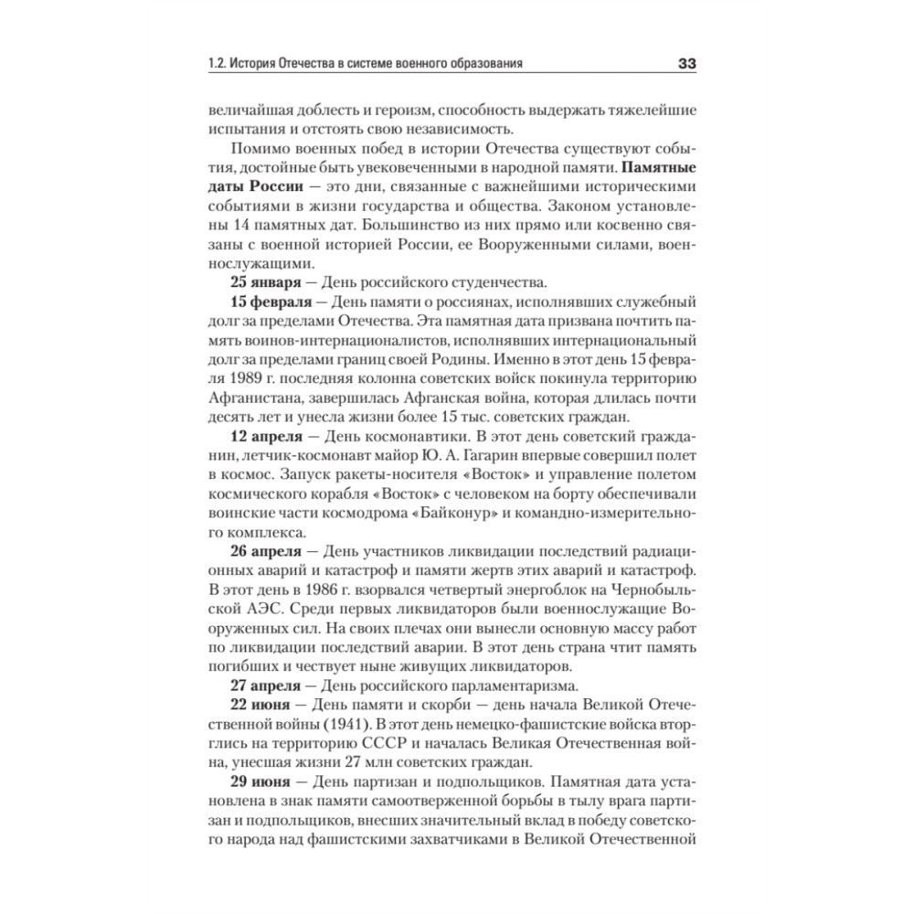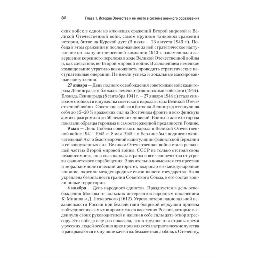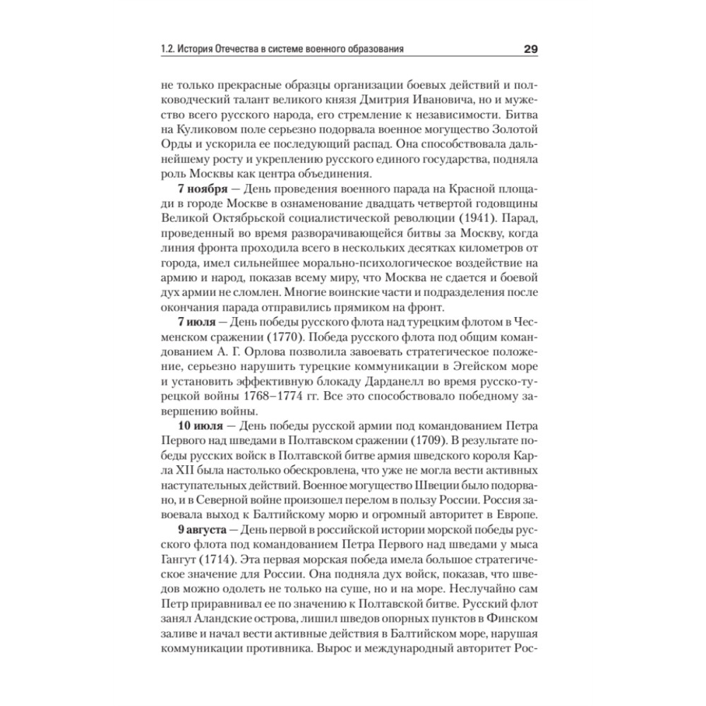 Среди гуманитарных дисциплин, изучаемых курсантами в высших военных учебных заведениях, исторические дисциплины имеют особое значение. Они закладывают основы исторического сознания будущих офицеров, формируют их личности как патриотов своей страны, защитников Отечества, создают базу для изучения других учебных дисциплин. Исторические знания необходимы и при организации офицером воспитательной работы в подразделении. История Отечества здесь играет ведущую роль.