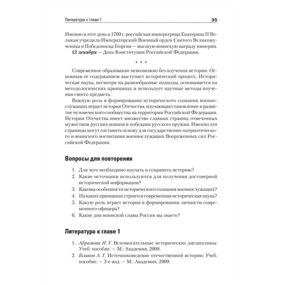 После каждой главы сформулированы вопросы для повторения, которые призваны оптимизировать самостоятельную работу курсантов по изучению исторического материала. Список литературы, рекомендованной к каждой главе, позволяет обучающимся расширить свои знания, глубже проникнуть в сущность заинтересовавших их проблем.