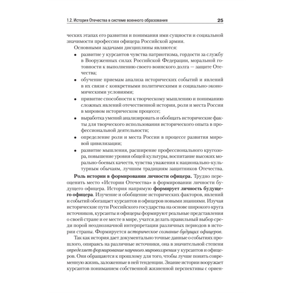 Учебников и учебных пособий по отечественной истории в настоящее время выпущено достаточно. Главное отличие этого учебника от других — его нацеленность на офицера современных Вооруженных Сил Российской Федерации. Еще одна особенность этой книги — обобщение опыта преподавания исторических дисциплин в ведущих военных вузах Санкт-Петербурга: Военной академии связи имени С. М. Буденного, Михайловской военной артиллерийской академии, Военно-космической академии имени А. Ф. Можайского и других. В авторский коллектив учебника входят девять докторов и два кандидата наук.