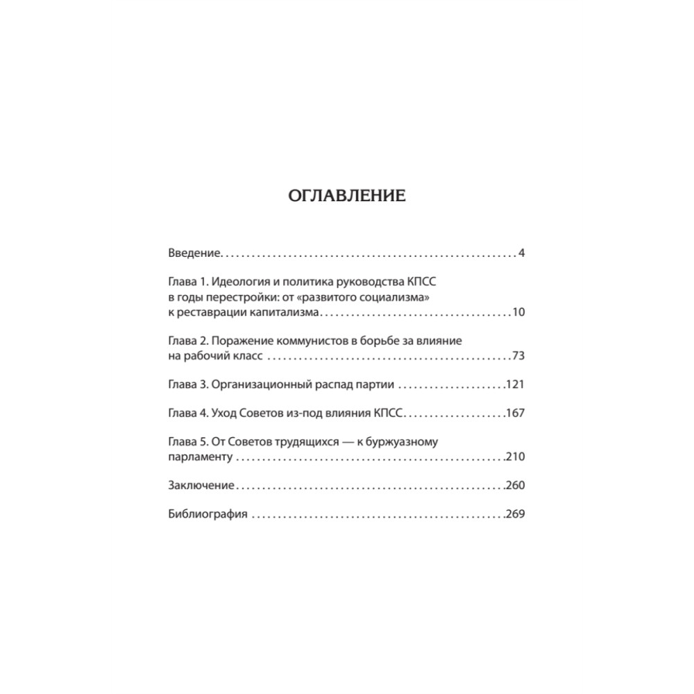 Книга «Конец истории КПСС» отвергает подобные версии. Она исследует внутренние причины поражения КПСС и СССР. К печальному концу их привела политика руководителей, направленная на реставрацию капитализма, наложившаяся на процессы «возвратного классообразования», подспудно вызревавшие в советском обществе на протяжении десятилетий.