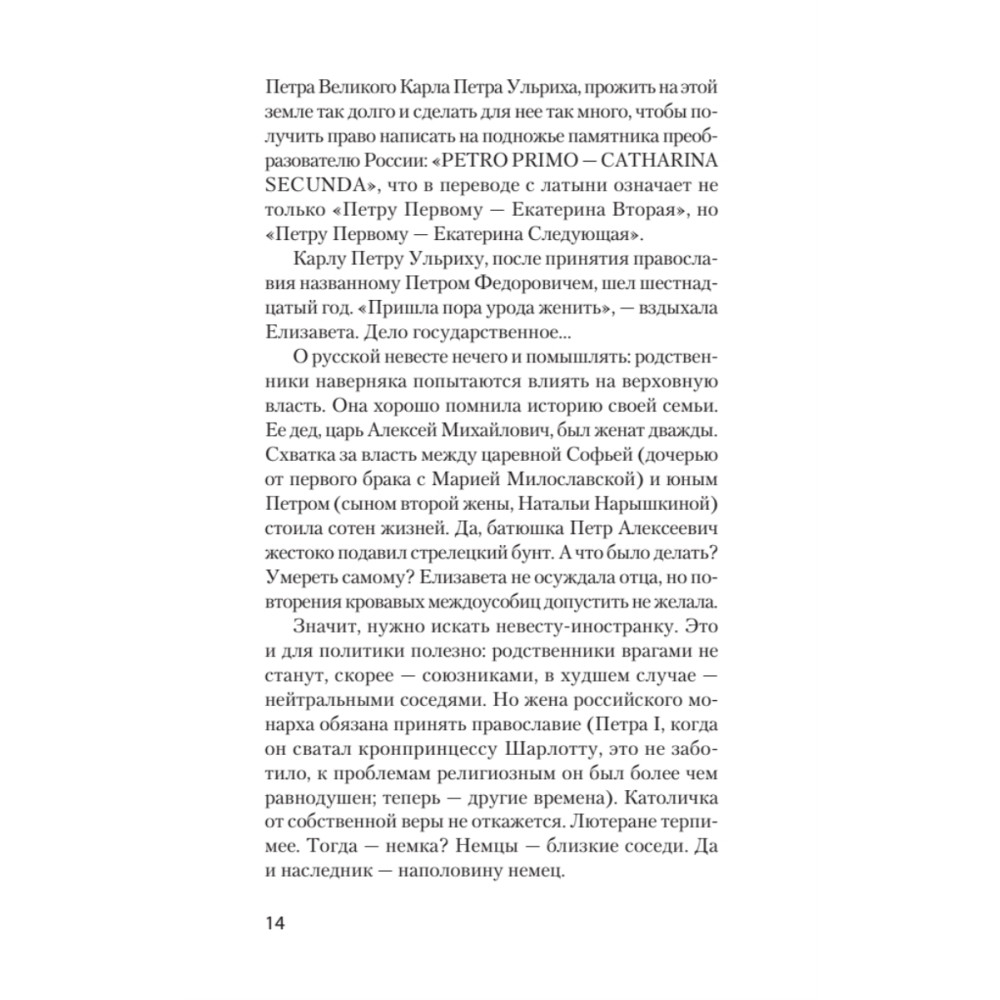 Эта книга — о немецких принцессах, ставших русскими царицами. У семерых героинь книги общая, немецкая, кровь и общая судьба. Из маленьких, уютных немецких княжеств все они в ранней юности попали в необозримую, суровую, загадочную страну. Все они поднялись на самую вершину власти. Все были вынуждены мастерски играть свою роль, скрывая подлинные чувства. И еще одно объединяло их, таких непохожих — ни одна не была счастлива. Ни малышка Фике, ставшая Екатериной Великой; ни ее невестка Мария Федоровна, чьи интриги могут сравниться лишь с ин-тригами Екатерины Медичи; ни Елизавета Алексеевна, ставшая музой величайшего поэта России; ни внешне такая беззаботная Александра Федоровна; не было горя, которое миновало бы Марию Александровну; хорошо известна страшная судьба последней российской императрицы, Александры Федоровны. Любой вымысел меркнет перед страстями и невзгодами, которые выпали на долю русских цариц, поэтому рассказ о них будет полон драматизма. В книгу вошли малоизвестные и вовсе не известные широкой публике факты из жизни Дома Романовых.