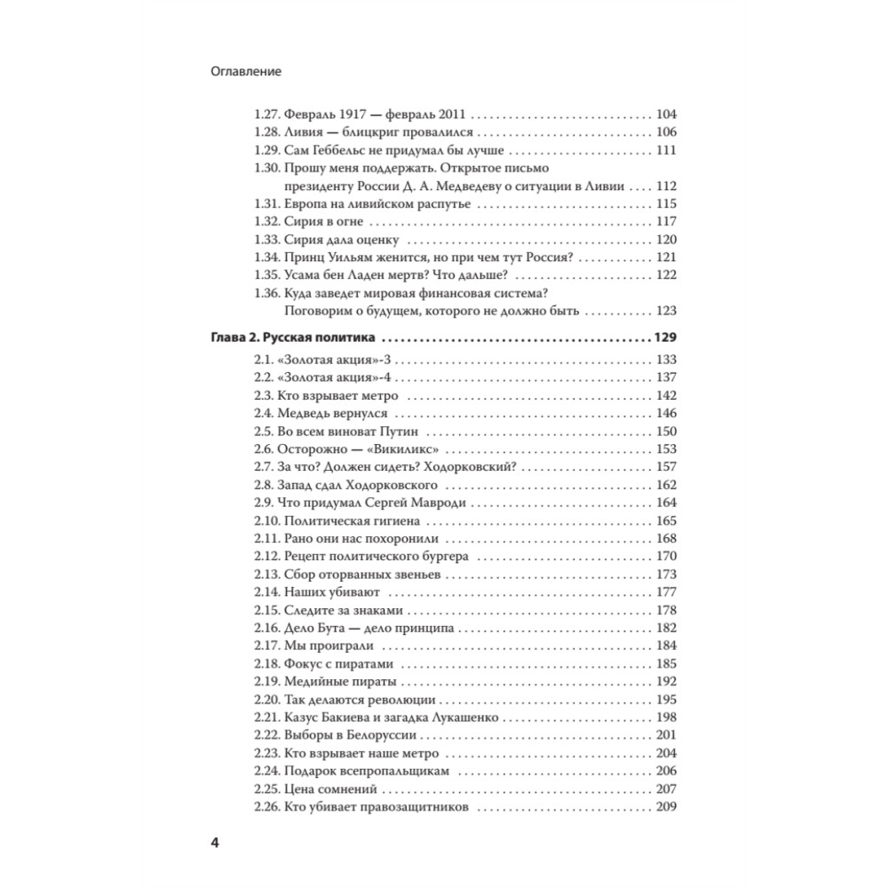 В книге вы найдете ответы на вопросы: Откуда на крышах арабских городов появились «неизвестные снайперы»? Почему НАТО развязало агрессию против Ливии? Для чего был создан ресурс Викиликс? Отрекался ли Николай II от престола? Кто и зачем убивает правозащитников в России? Почему «несогласные» упорно хотят нарушать Конституцию России? Какова должна быть Русская политика в наступающих обстоятельствах?