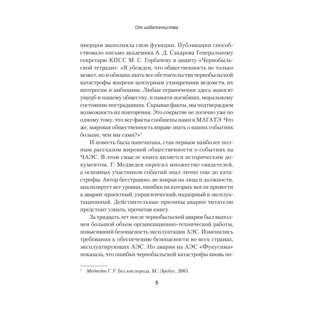 "Обязательная для прочтения книга, написанная советским физиком... К тому же Григорий Медведев лично бывал на месте событий. Прекрасное сочетание исторического повествования и научного подхода". Крэйг Мэйзин, сценарист мини-сериала HBO "Чернобыль".