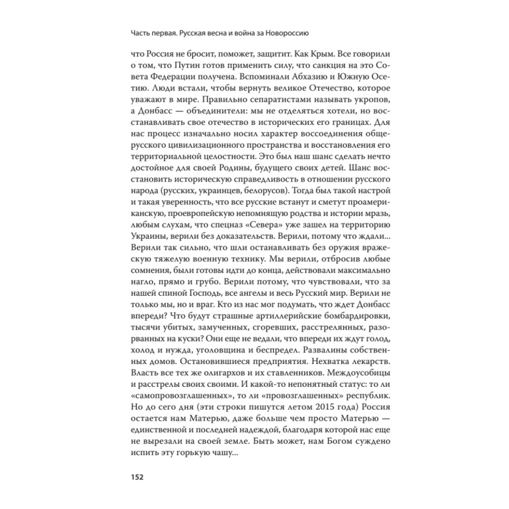 Сквозь грязь и кровь, сквозь дым пожарищ и тучи лжи сверкает пламя — факел Новороссии. Нет, он не погас, как ни старались уничтожить его враги всех мастей. В основе народного бунта против «европеизации» с лицом новой бандеровщины лежат великие, благородные идеи. Здесь, на Донбассе, в грохоте битв, выковался великий Русский проект — наш ответ планам глобальных рабовладельцев. Образ великого будущего нашего народа. И пусть он пока остается идеей, но за ним — Грядущее. И Новороссии — органичной части России, и самой России. Как начиналась народная революция в Донбассе? Была ли там «страшная рука Москвы»?