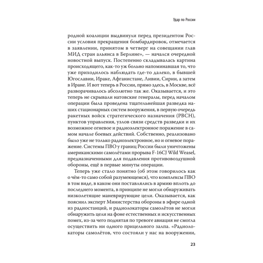 Несколько лет назад вышла книга-предупреждение Валерия Коровина" Удар по России". В ней автор утверждал, что Третья мировая война уже идет, и конечной целью главного агрессора, США, является наша страна. Что изменилось с тех пор? Сегодня Россия стремительно набирает авторитет на международной арене, но и наши оппоненты не тратят время зря, действуя всё белее открыто, цинично и нагло. Дыхание войны чувствуется буквально во всём. Наверное, впервые с эпохи Карибского кризиса человечество снова колеблется на грани небытия. Неужели апокалиптическая реальность, которой нас старательно пугали весь XX век, станет нашим "завтра"? Или все же Россия сумеет вовремя предотвратить надвигающуюся катастрофу?
