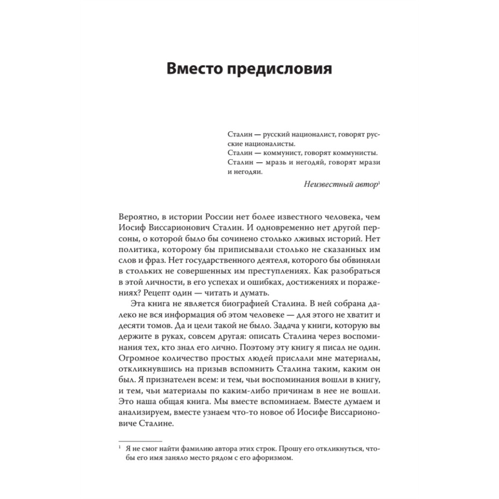 В современной истории России нет более известного человека, чем Иосиф Сталин. Вокруг него не умолкают споры, а оценки его деятельности диаметрально противоположны. Нет политика, которому бы приписывали столько не сказанных им слов и фраз. Нет государственного деятеля, которого бы обвиняли в стольких не совершенных им преступлениях. Как же разобраться в этой неоднозначной личности? Лучший способ — обратиться к документам и воспоминаниям тех, кто знал его лично.