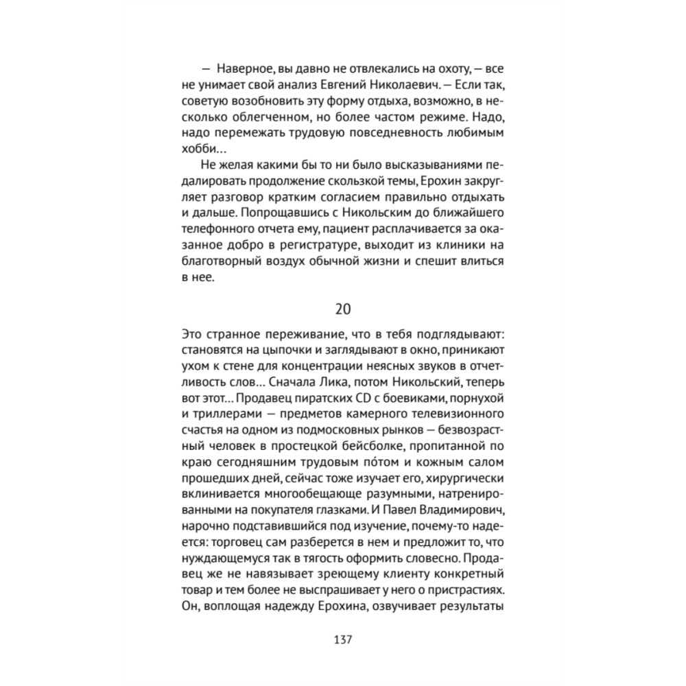 Автор нам покажет всю механику движения психики. В какой-то момент читателю не удастся узреть, где сознание зверя, а где человека. Даже и пытаться не стоит...