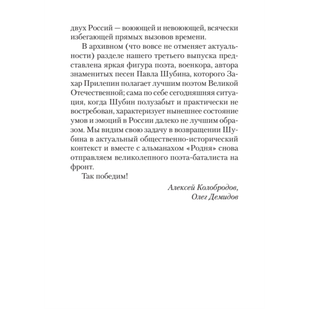 В третьем выпуске литературного альманаха «Родня» — произведения поэтов, прозаиков, военкоров, которые активно поддерживают страну и «русский мир» и противостоят либеральным тенденциям, задававшим тон последние десятилетия. По сути, это новое перспективное направление в русской культуре.