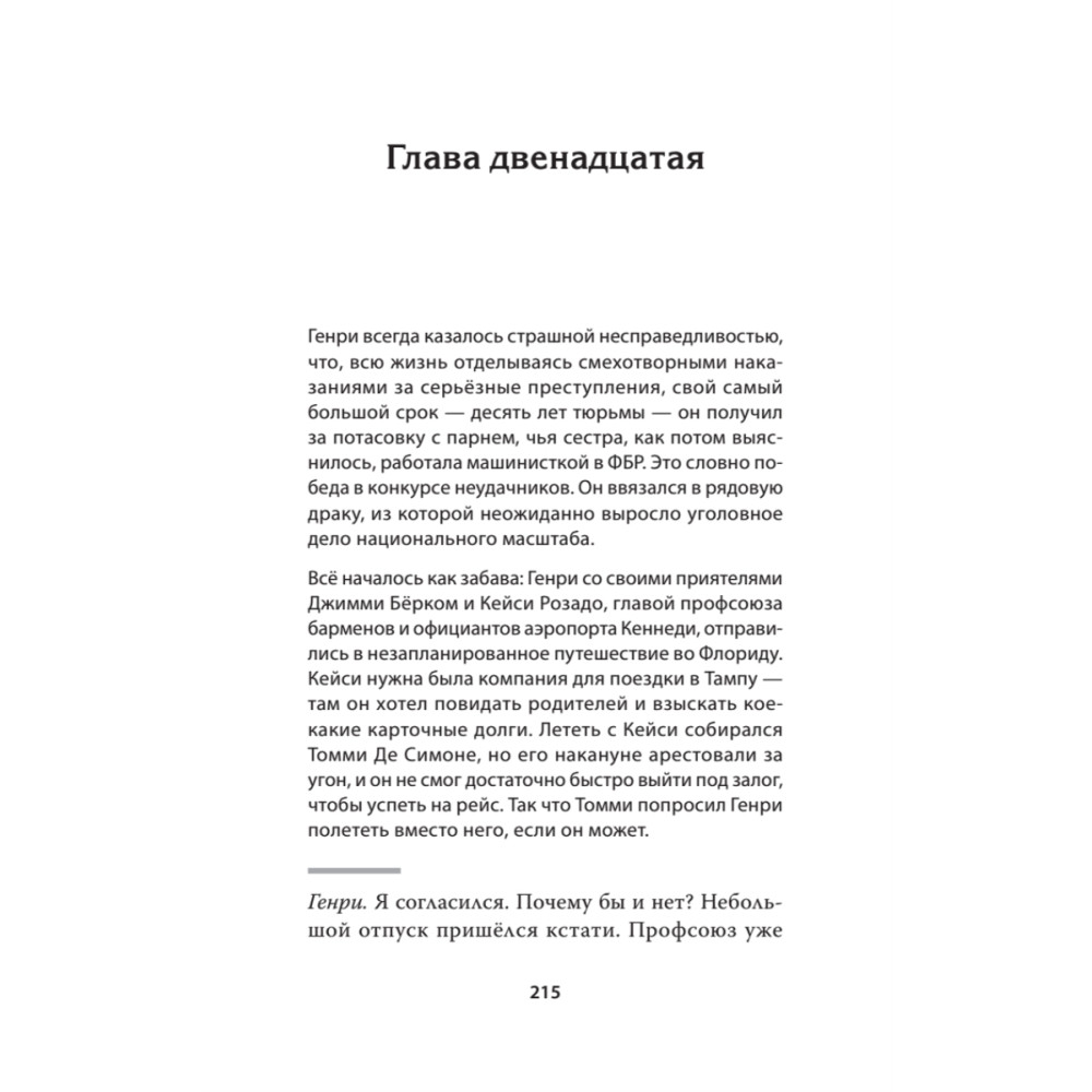 Генри Хилл был бандитом. Он был аферистом. Он строил козни, плёл интриги и проламывал головы. Он знал, как дать взятку и знал, как обуть лоха. Он работал в мафии на полную ставку в качестве рэкетира и громилы, он был rara avis — той редкой птицей, которую охотно изучили бы как социальные антропологи, так и копы. На улицах он и его друзья называли себя «умниками». Мне кажется, его история даёт уникальный взгляд изнутри на жизнь пехотинца оргпреступности, которую обычно описывают либо посторонние, либо capo di tutti capi, мафиозные боссы.
