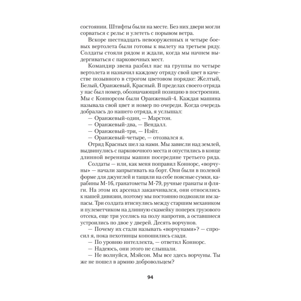 Это мой рассказ о том, что я увидел во Вьетнаме и как это повлияло на мою жизнь. Все события реальны; надеюсь, что хронология и география достаточно близки к реальности, во всяком случае, я это вижу именно так. Имена персонажей и их характерные черты изменены из уважения к их праву на личную тайну. Я хотел бы извиниться перед «ворчунами», если им не по душе это слово. Я не испытываю к ним ничего, кроме уважения, вспоминая о тех условиях, в которых им пришлось служить. Надеюсь, что мои воспоминания заставят и других ветеранов заговорить об эпохе вьетнамской войны и о том, как она повлияла на людей и на общество в целом. Вместо того чтобы говорить о политических аспектах войны, я сосредоточился на том, чтобы рассказать о реальной жизни вертолетчика во Вьетнаме в 1965–66 годах. Я надеюсь, что события будут говорить сами за себя.