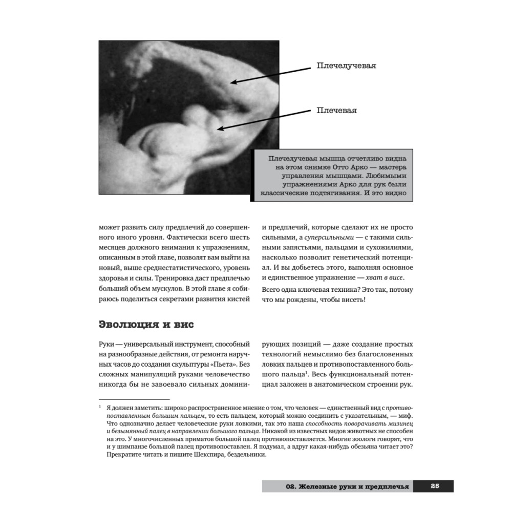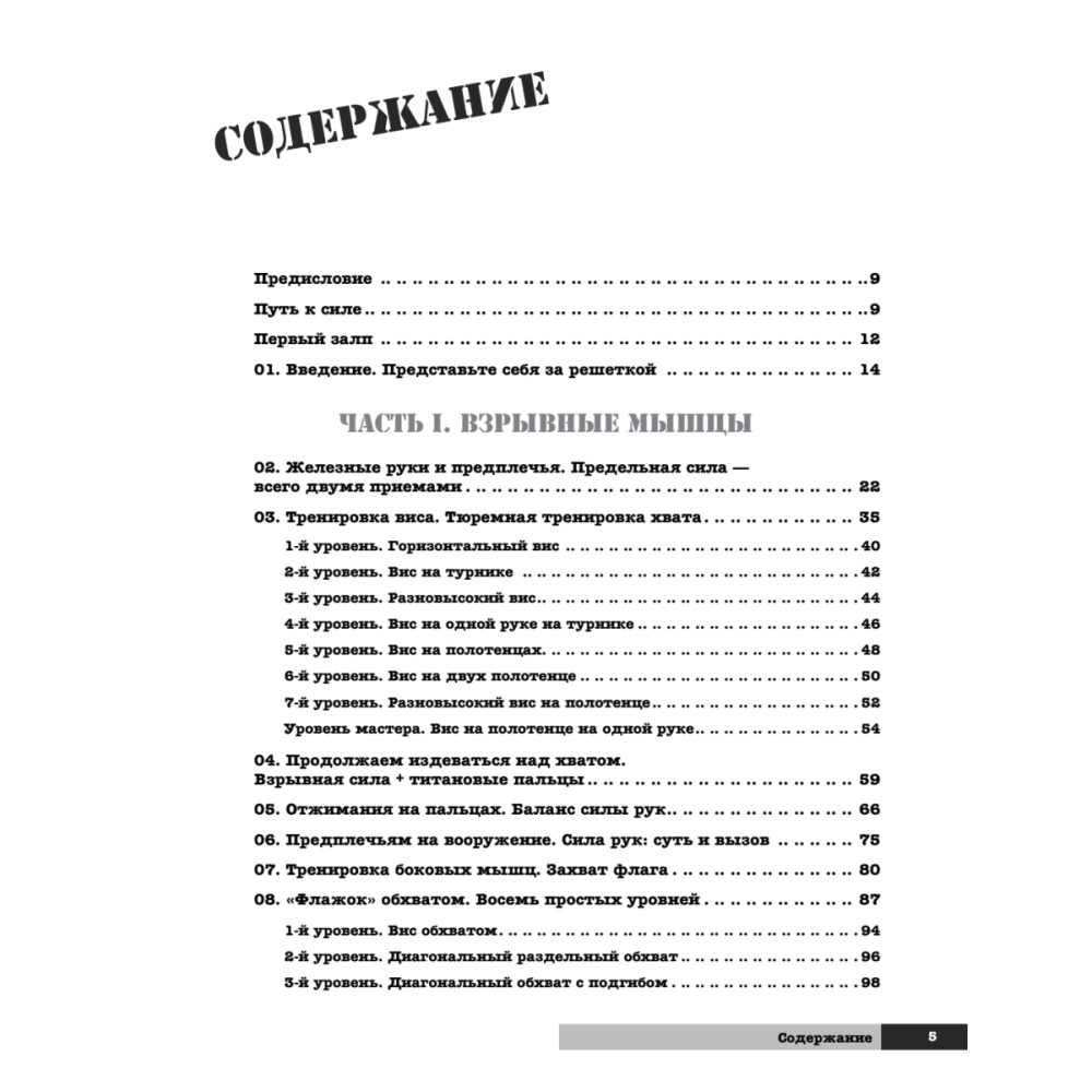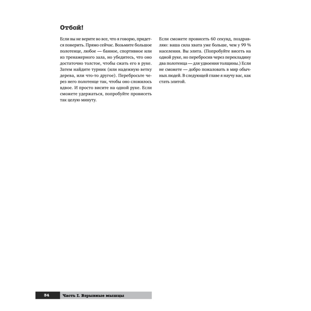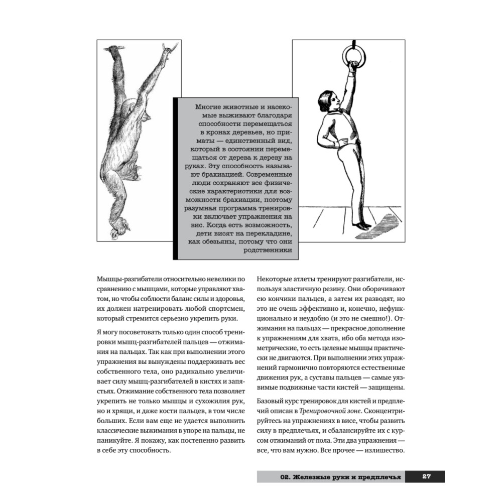 Продолжение культовой книги «Тренировочная зона» Пола «Тренера» Уэйда посвящено продвинутым техникам тренировок с собственным весом для развития предельной силы и мышц. В книге даются упражнения для укрепления мышц пальцев и кистей, позвоночника, шеи, предплечья, икр и ступней, а также всестороннего развития суставов. Предлагаемая система упражнений включает в себя вис на полотенце одной рукой, отжимания на пальцах, «флажки», борцовский и фронтальный «мостик», комплексы по укреплению суставов и растяжке, а также отдельный раздел с советами по питанию и восстановлению после травм.