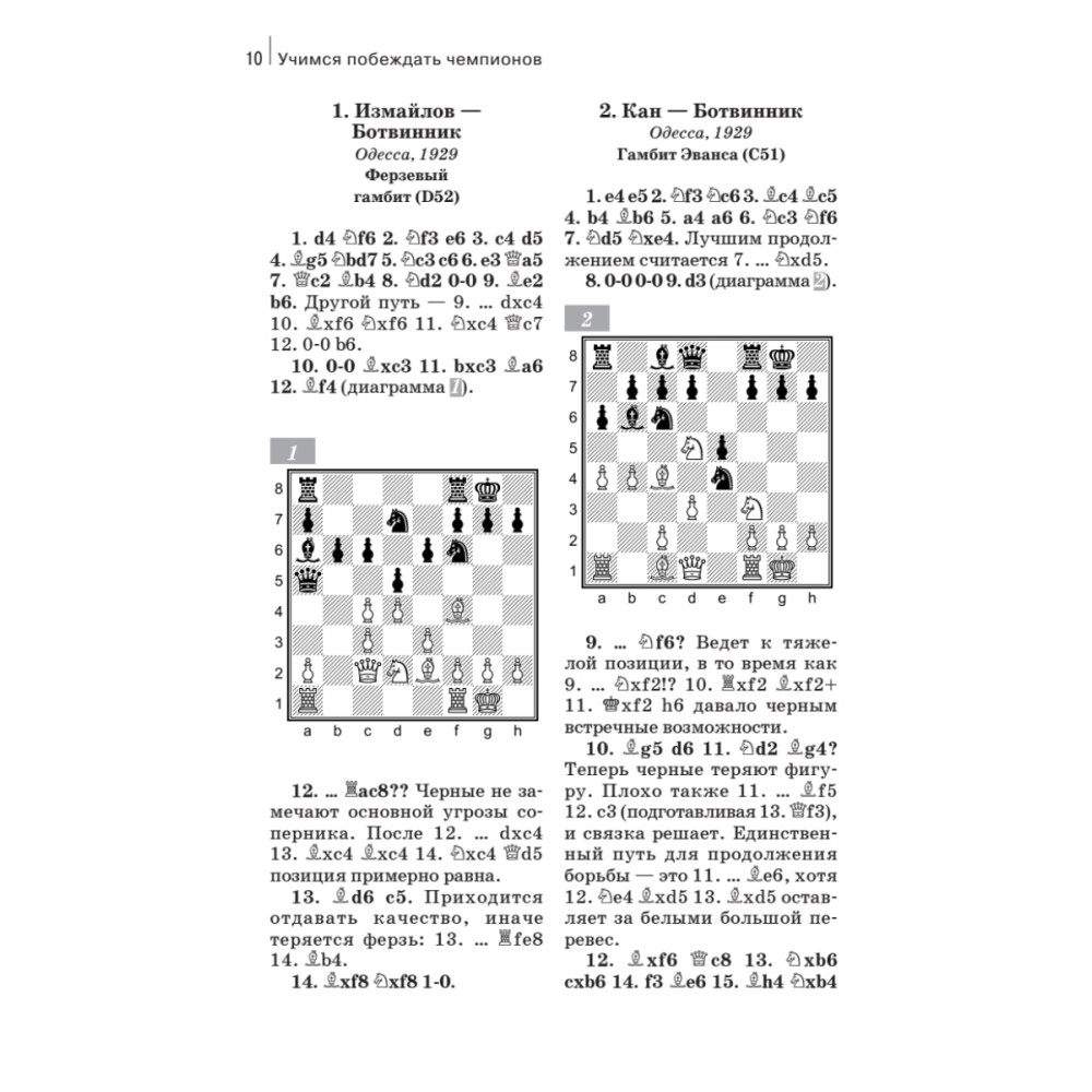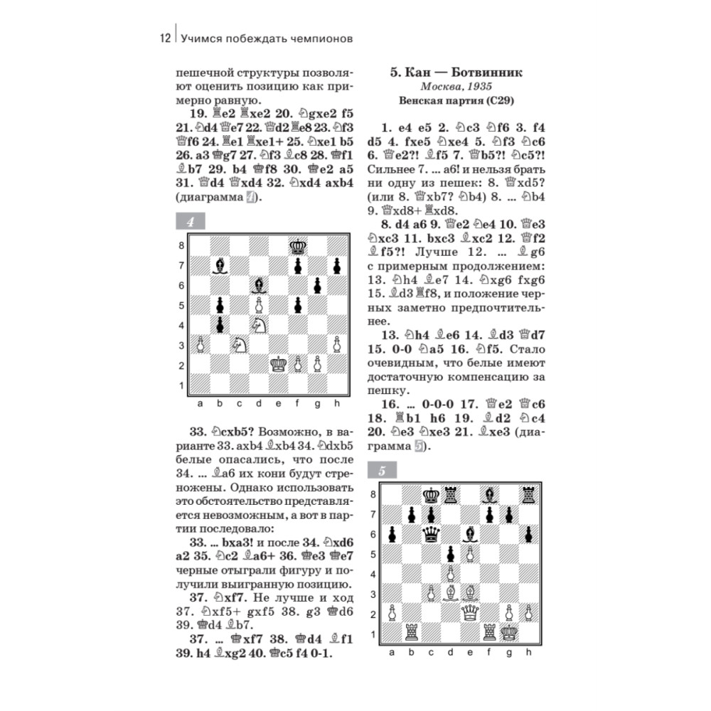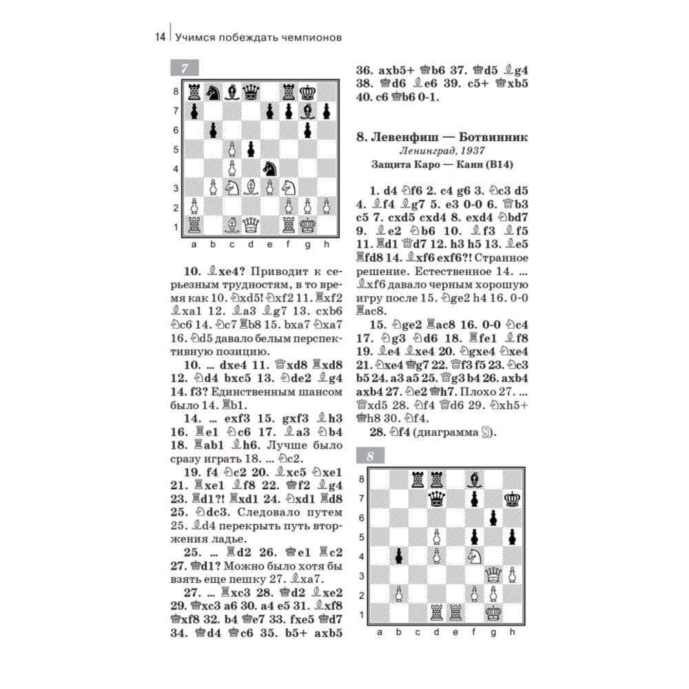 Книга, которую вы держите в руках, не совсем обычная, в некоторой степени она даже сенсационная, ибо как видно из названия, она посвящена не победам, а поражениям чемпионов мира по шахматам от Ботвинника до Фишера. Победы «небожителей» на слуху, они растиражированы в многочисленных публикациях и монографиях, на них учатся молодые шахматисты. Но ведь поражения великих не менее поучительны и зрелищны, ибо победить чемпиона можно, только приложив сверхусилия и показав все свои творческие возможности. В книге собрано более 200 захватывающих поединков, что не только делает ее прекрасным учебником по стратегии и тактике, но и восполняет в некоторой степени недостаток исторической информации о ее героях. Все партии подробно прокомментированы, что позволяет читателю легко понять ход происходящих в них событий. «На ошибках учатся» – гласит народная мудрость, давайте попробуем поучиться на ошибках великих шахматистов.