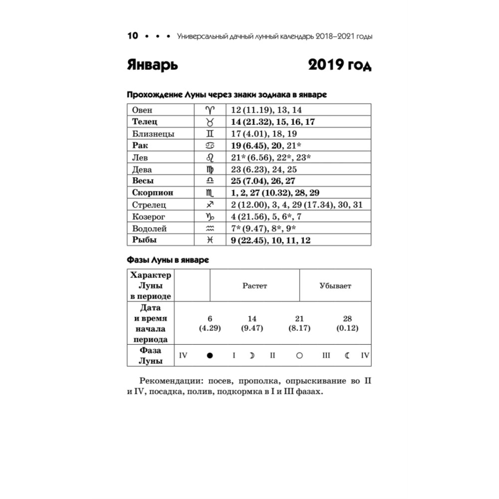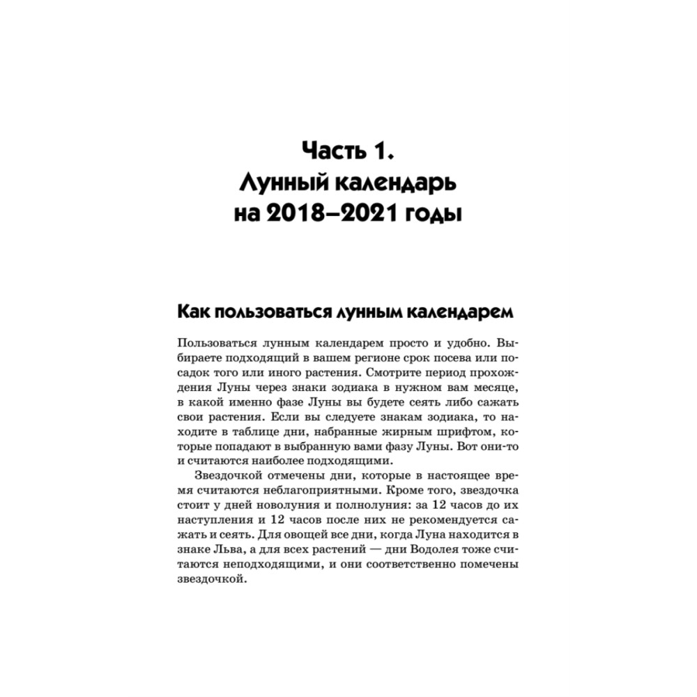 А для тех, кто привык ориентироваться на фазы Луны и знаки Зодиака, в книге приводится лунный календарь на четыре года — c 2018 до 2021.