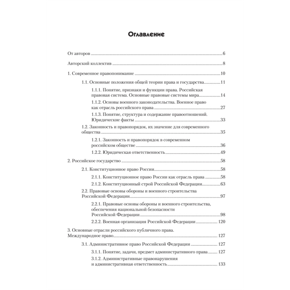 В учебнике излагаются основные положения теории права и государства, рассматриваются отдельные отрасли российского права, правовое регулирование обороны и военного строительства, основы военного права Российской Федерации. Учебник рассчитан на широкий круг читателей: курсантов, слушателей, преподавателей военных вузов, командиров, начальников, воспитателей, военнослужащих и сотрудников силовых ведомств, студентов военных факультетов и кафедр гражданских вузов и всех интересующихся вопросами российского и военного права. Структура и содержание учебника соответствует Федеральным государственным образовательным стандартам высшего профессионального образования. Данное издание подготовлено коллективом преподавателей Военной академии связи им. С.М. Буденного, Рязанского высшего воздушно-десантного командного училища, Санкт-Петербургского университета Государственной противопожарной службы МЧС России, Российского нового университета. В авторский коллектив учебника входят два доктора и семь кандидатов наук. Рекомендовано Учебно-методическим объединением высших военно-учебных заведений по образованию в области военного управления Вооруженных Сил Российской Федерации по гуманитарно-социальным специальностям в качестве учебника для курсантов и слушателей высших военно-учебных заведений. Рекомендовано Учебно-методическим объединением высших военно-учебных заведений по образованию в области военного управления Вооруженных Сил Российской Федерации по гуманитарно-социальным специальностям в качестве учебника для курсантов и слушателей высших военно-учебных заведений.