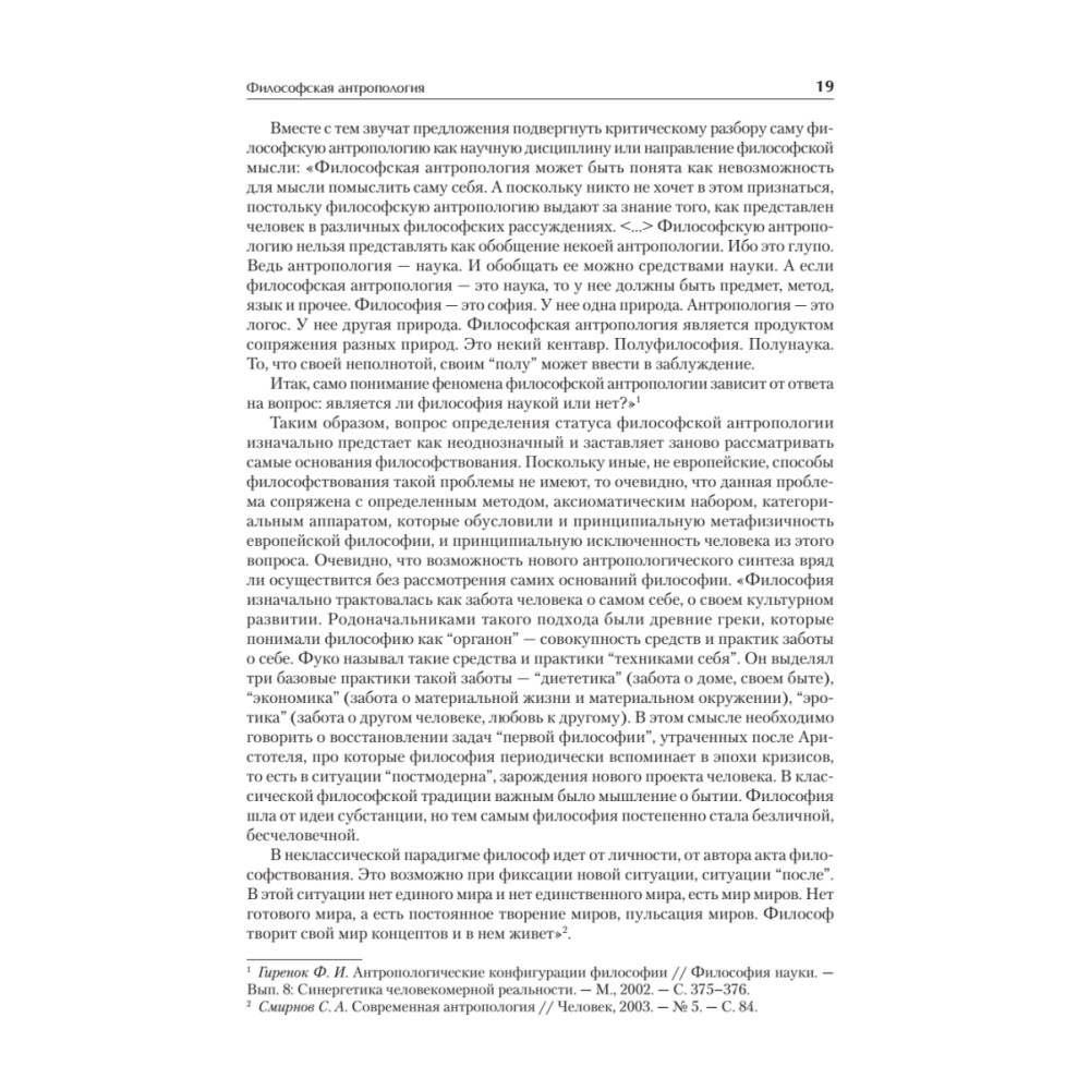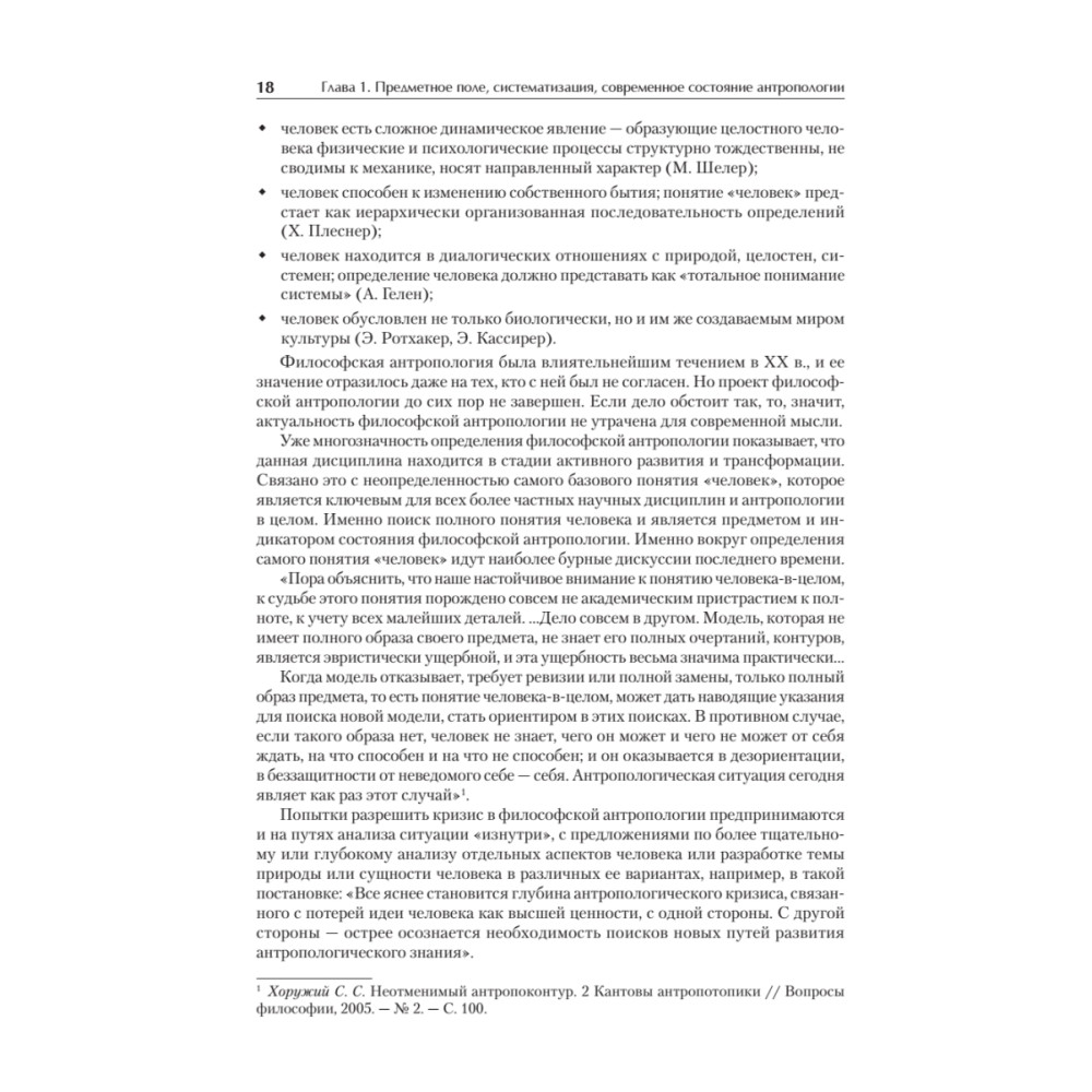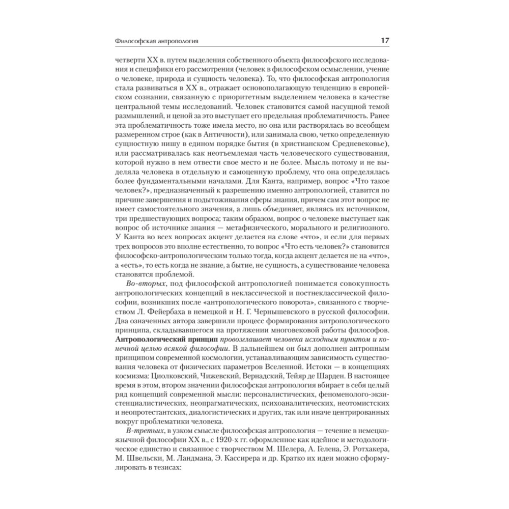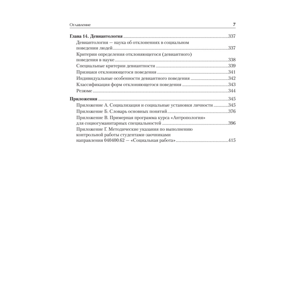 Антропология в настоящее время является одной из наиболее динамично развивающихся областей научного знания, в которой постоянно подвергаются пересмотру сведения и концепции, еще недавно казавшиеся незыблемыми. В настоящее время специальный курс антропологии читается в рамках подготовки специалистов по социальной работе и прикладной этике. Специалисту по социальным и гуманитарным технологиям необходимы сведения о человеке, которые позволили бы ему с максимальной эффективностью осуществлять свою профессиональную деятельность, при этом за анализом конкретных судеб и ситуаций он должен видеть закономерности развития человека и социума, с тем чтобы его действия приносили действительную пользу. Все вводимые понятия по возможности раскрываются автором в тексте учебника, также учебник снабжен «Словарем ­основных понятий по антропологии», в котором раскрываются значения основных категорий курса. Для того чтобы данный учебник мог быть использован для самостоятельной подготовки студентами и преподавателями, в приложение включена примерная программа по курсу «Антропология» для специальностей «Социальная работа», «Прикладная этика», «Работа с молодежью».