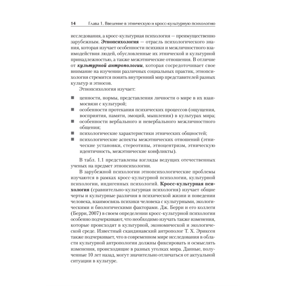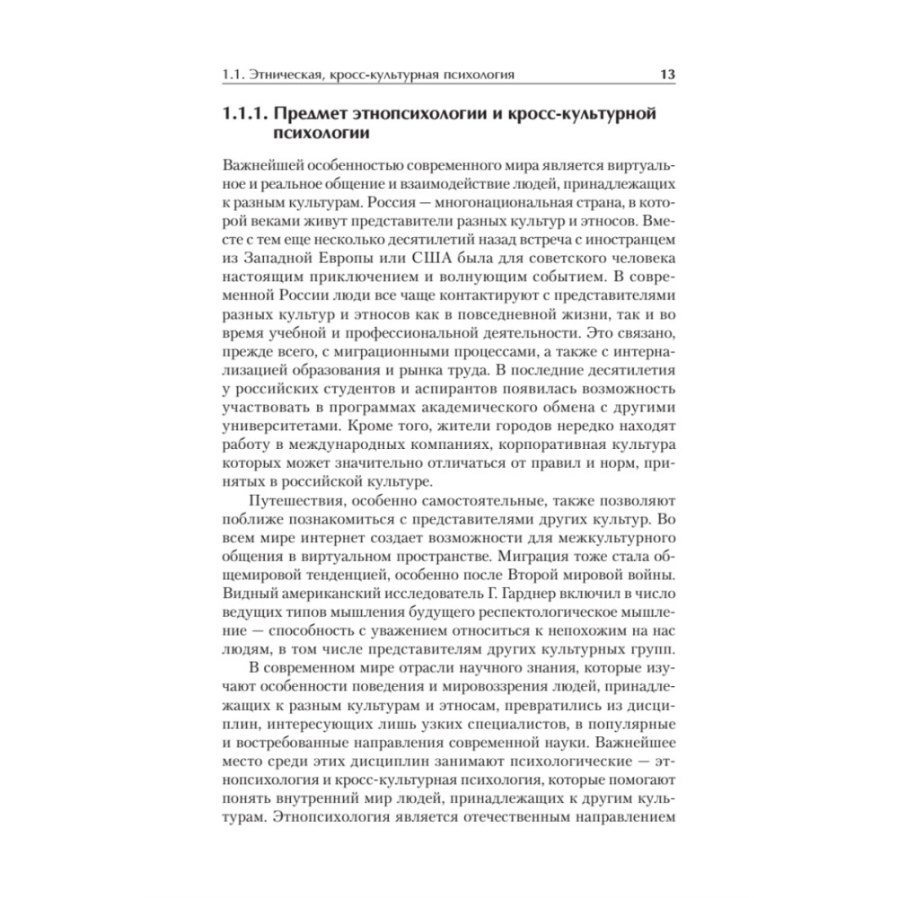 Целью книги является знакомство читателей с наиболее значимыми проблемами этнической и кросс-культурной психологии. Авторами рассматриваются культурные особенности вербального и невербального общения, межкультурной коммуникации, ценностных ориентаций и социальных норм, межэтнические отношения и межэтнические конфликты, проблемы миграции. Пособие включает теоретический материал, практические задания и вопросы для самопроверки, словарь этнопсихологических терминов. Оно предназначено для студентов, аспирантов, преподавателей психологии. Пособие будет полезным студентам и специалистам в области антропологии, социологии, журналистики, международных отношений, педагогических направлений.