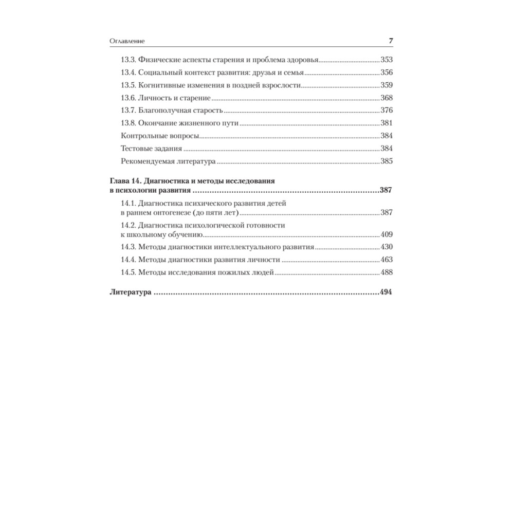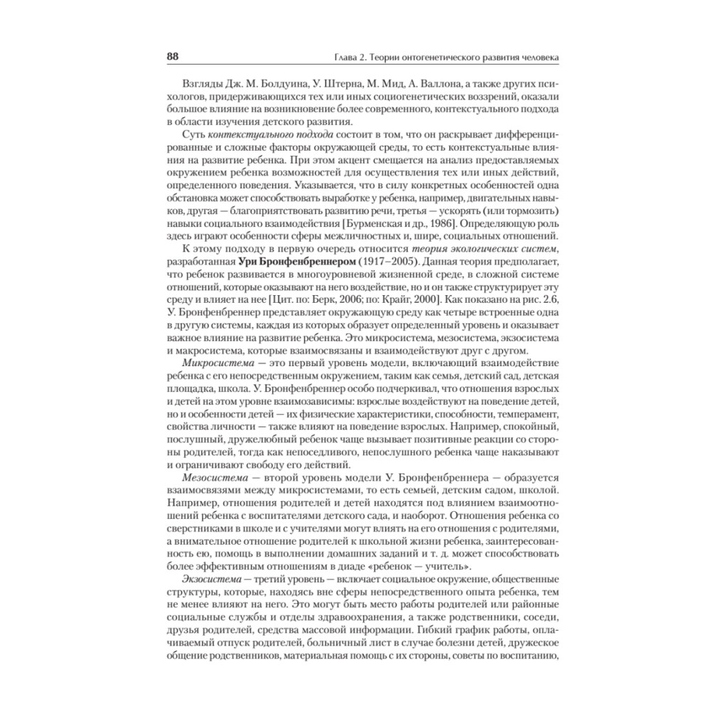 Учебник содержит системное изложение базового курса «Психология развития», в котором представленны понятийный аппарат и основные, ставшие уже классическими теории и подходы к проблеме психического развития в отечественной и зарубежной психологии. Отличительная особенность данного учебника в том, что в нем наиболее полно представлены все возрастные этапы и особенности развития от пренатального периода до поздней взрослости, включая танатологию. Собранный воедино учебный материал является логическим продолжением «Хрестоматии по психологии развития» и содержит необходимый методический инструментарий, применяемый для диагностики психического развития. Актуальность выхода нового учебника определяется настоятельной необходимостью подготовки грамотных практических психологов для нужд социальной сферы, бизнес - практики, методического обеспечения консультативной работы. Учебник предназначен для студентов, аспирантов и слушателей психологический отделений университетов, будущих педагогов и социальных работников.
