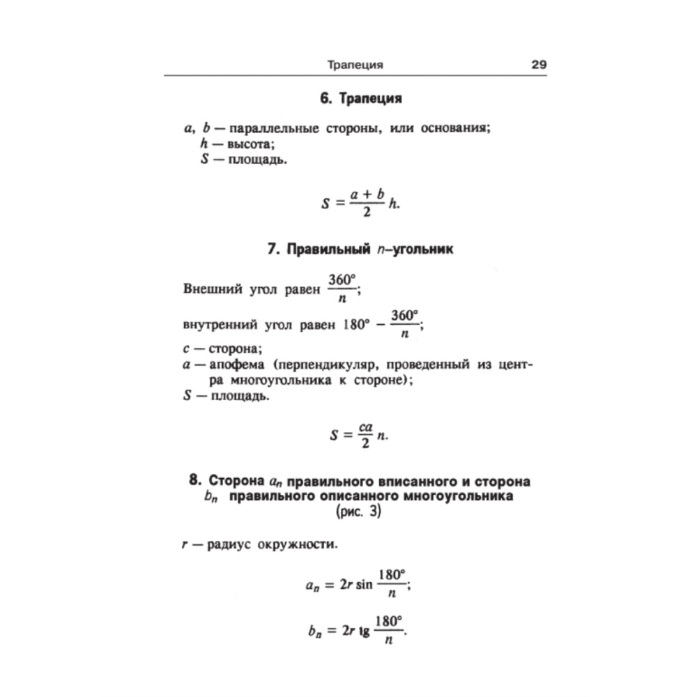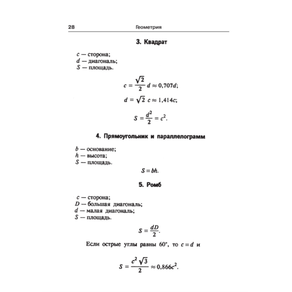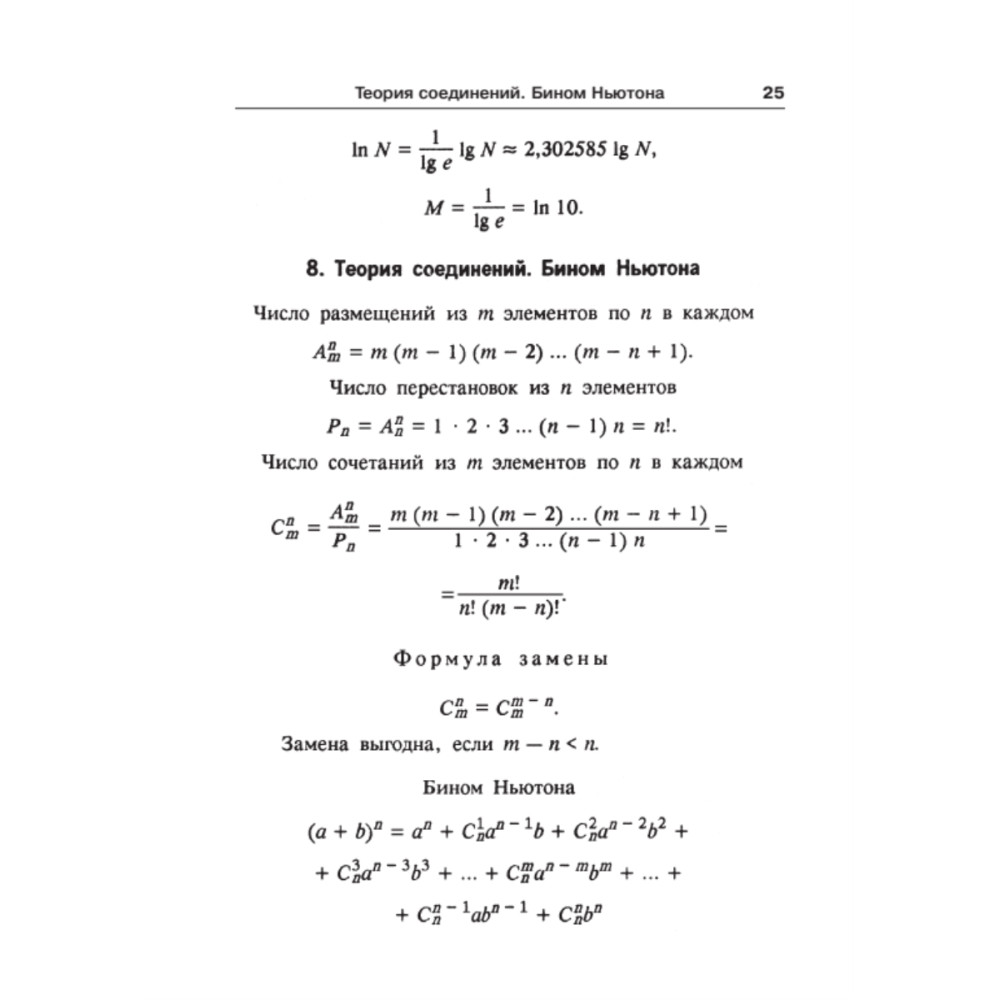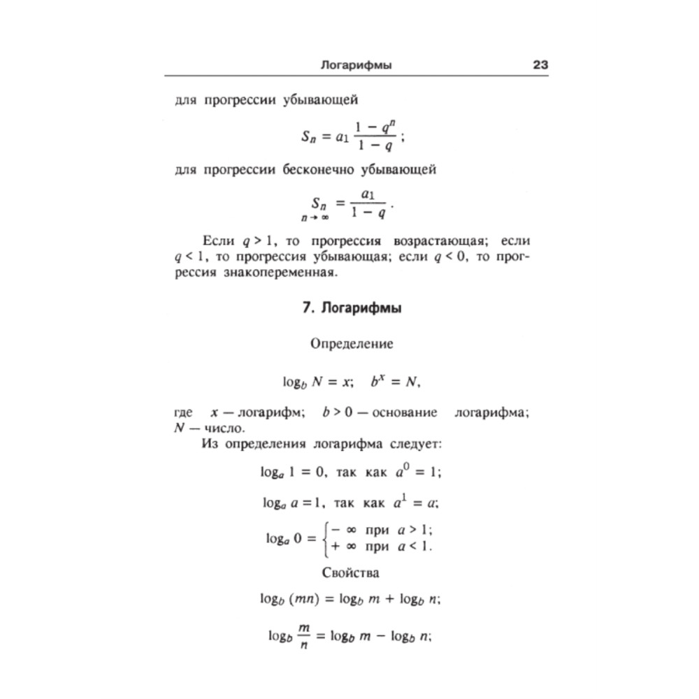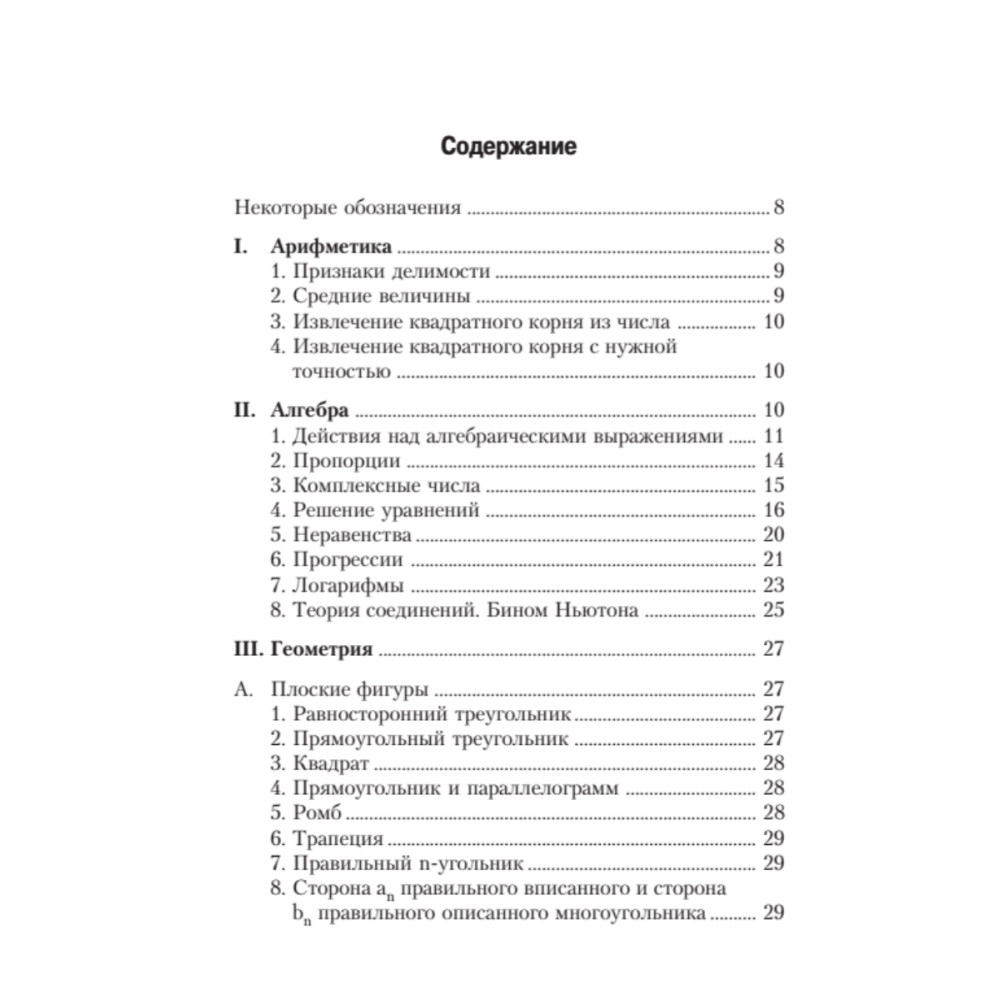 Сборник содержит формулы элементарной и высшей математики — арифметики и алгебры, геометрии и тригонометрии, векторной и линейной алгебры, дифференциального и интегрального исчисления, рядов, теории вероятности и др. Он адресован школьникам и абитуриентам, студентам высших и средних специальных учебных заведений, преподавателям и инженерам.